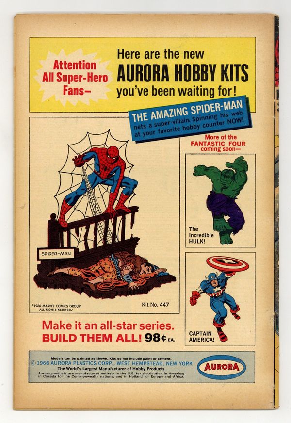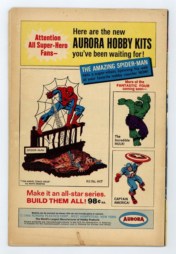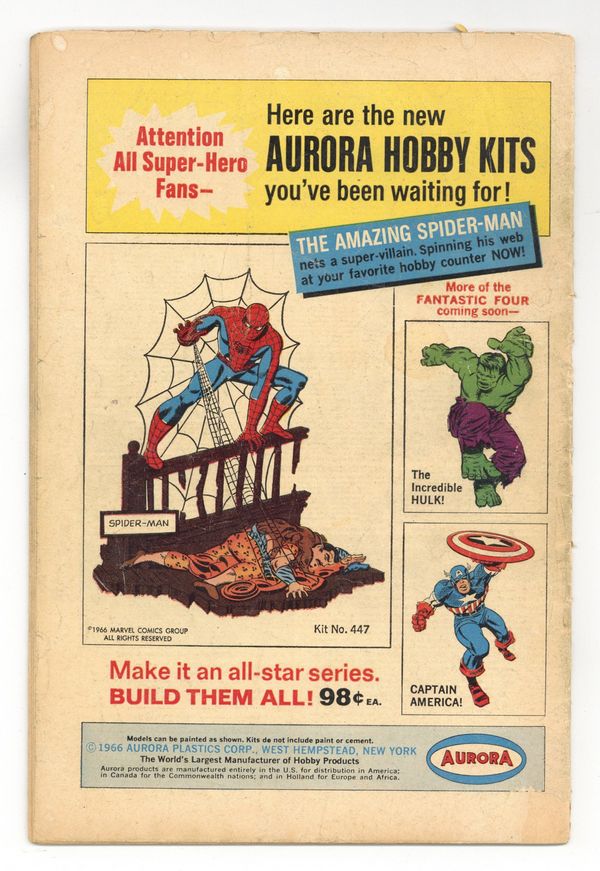 Cover by John Romita Sr.. The third appearance of the Lizard in Spidey Smashes Out!, script by Stan Lee, art by John Romita Sr.; The Lizard heads to Dr. Connor's lab to find a formula to transform reptiles into his personal army; Aunt May worries about Peter; The Lizard and Spider-Man battle aboard a train. Reprinted in Marvel Tales # 185. 36 pgs., full color. $0.12. Cover price $0.12.