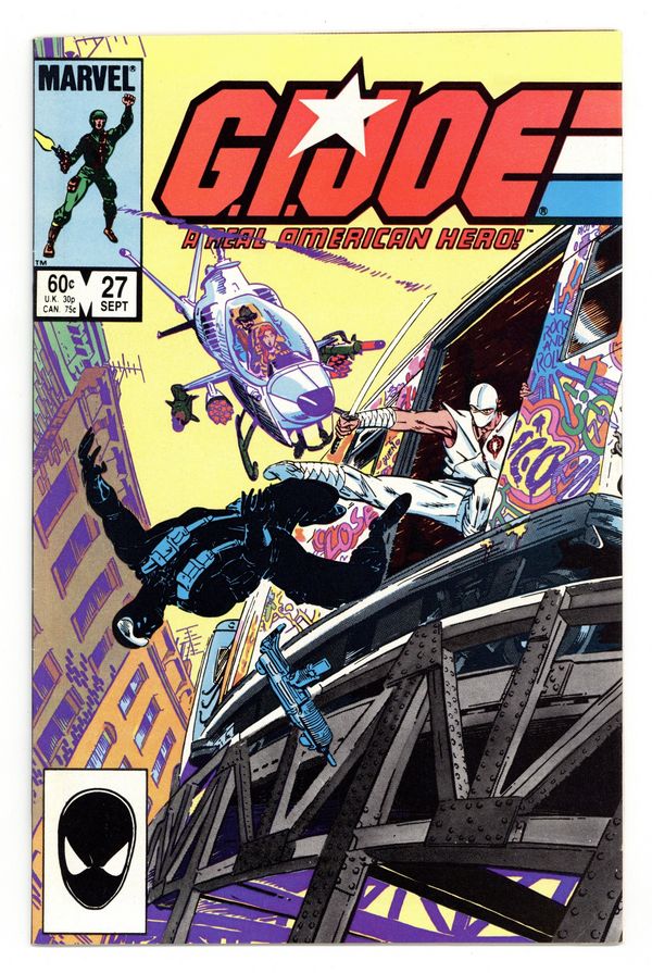 Tags: G.I. Joe$14.501st printing - "Snake-Eyes: The Origin: Part 2 of 2!" Written by Larry Hama. Art by Frank Springer and Andy Mushynsky. As Cobra's elite fight for their lives in the swamp, Scarlet thinks back to the first time she ever met GI Joe's resident super ninja. The origin of Snake-Eyes continues! Plus, Storm Shadow and Snake-Eyes duel to the death and a startling secret about their rivalry is revealed! 32 pages, FC. Cover price $0.60.