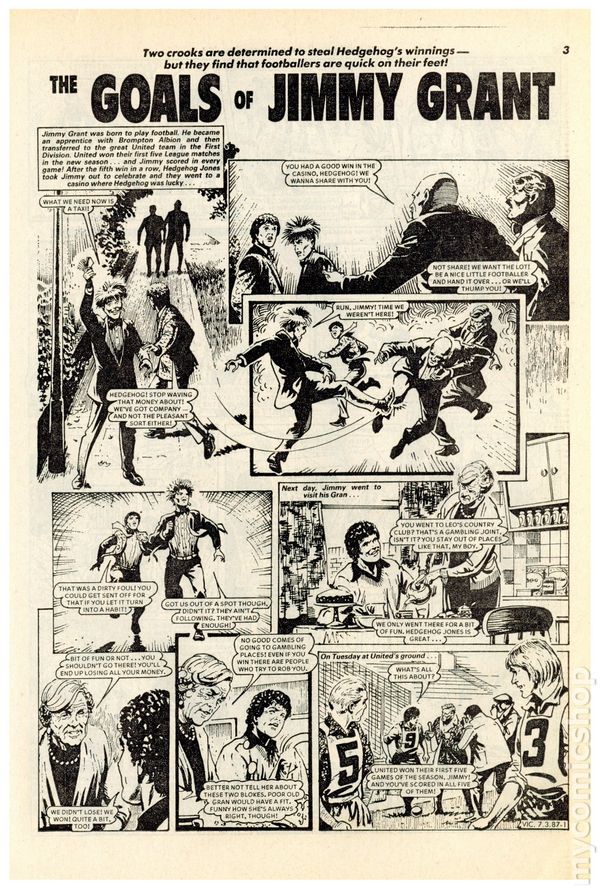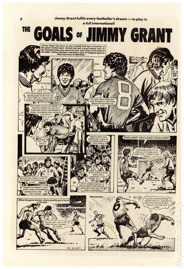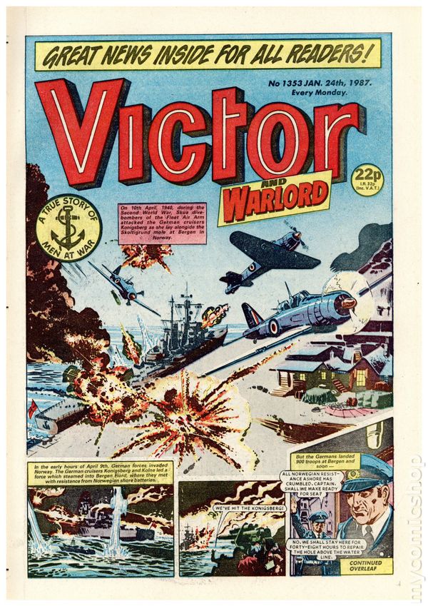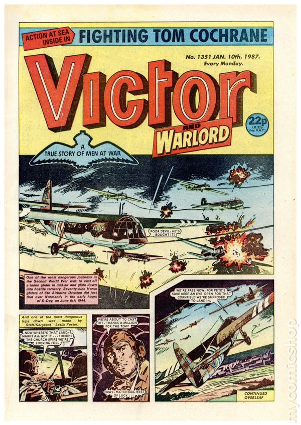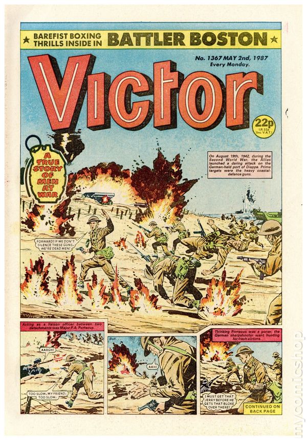 UK series. March 14th, 1987. Stories include Victor, Battler Boston, You're in the Navy Now!, The Jewel and the Sword, Hallam's Hardest Mission, The Hammer Man, Grasshopper Green, The Goals of Jimmy Grant, and It's a Dog's Life. 8 1/4" x 11 7/8", 32 pages, B&W, 22p cover price.