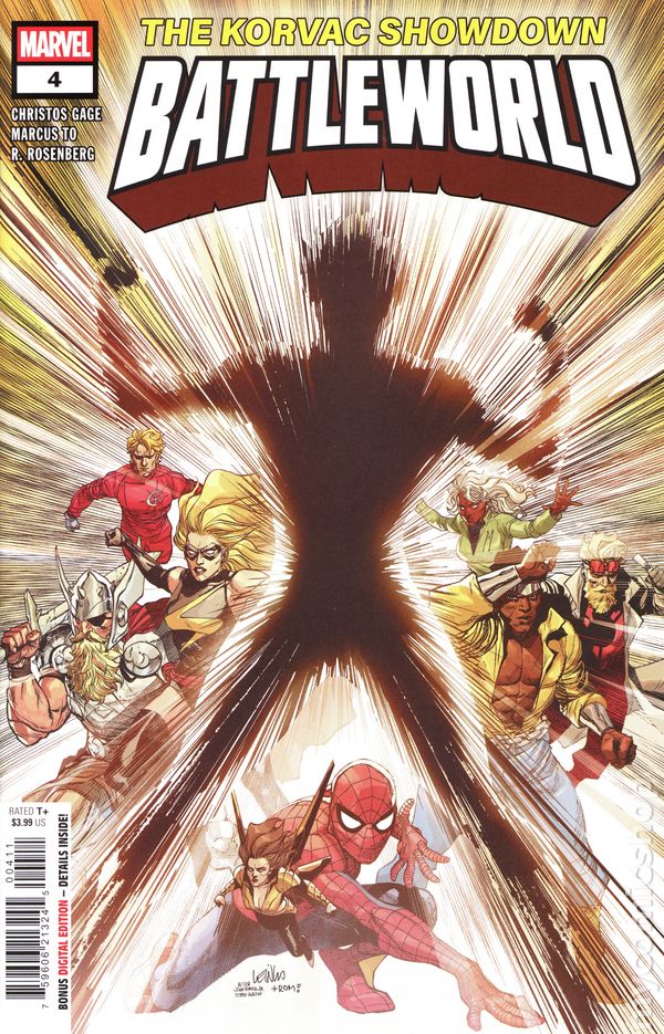(W) Christos Gage (A) Marcus To (CA) Elizabeth Torque TO COURT KORVAC! BATTLEWORLD is on the brink of destruction, and almost nothing can stop Korvac from his mission! Options are dwindling for our heroes, so JANET VAN DYNE does what she must to save them… Cover price $3.99.