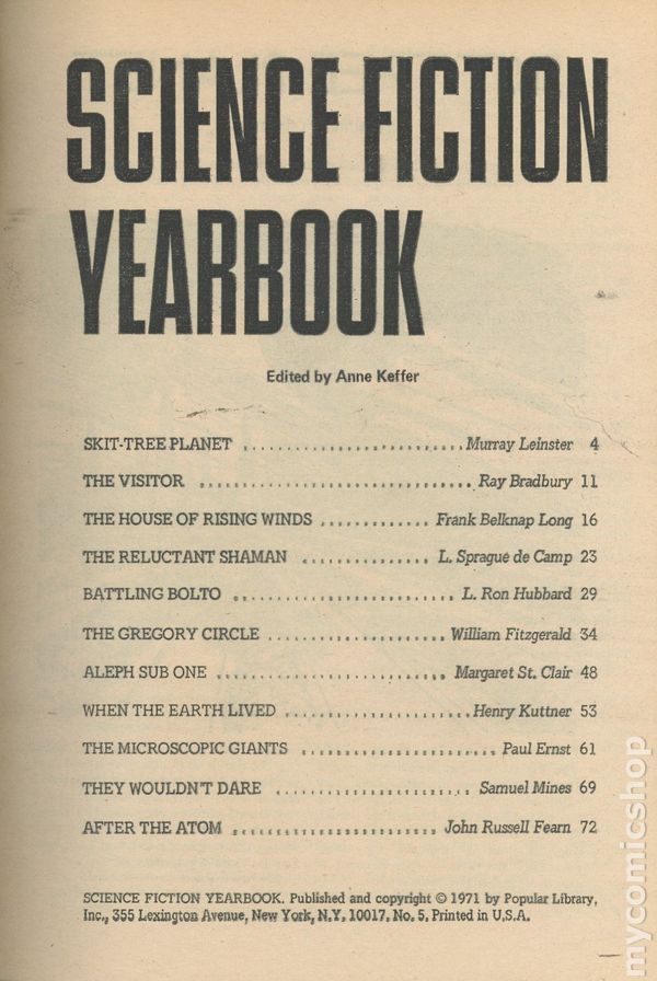 Cover by George Schelling. Collection of classic science fiction reprints from Ray Bradbury, Robert F. Young, Randall Garrett, Daniel F. Galouye, Richard Wilson, Isaac Asimov, Ron Goulart, Henry Slesar, Poul Anderson, Rog Phillips. Illustrations by Joe Sewell, Leo Summers, Virgil Finlay. 5 1/2-in. x 7 1/2-in. 130 pages, black and white. Cover price $0.50.