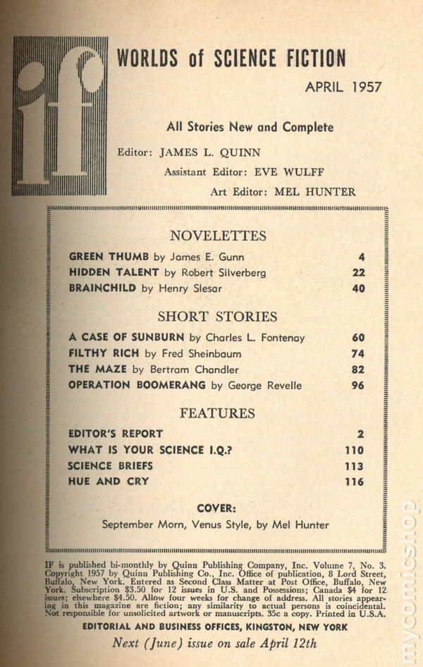 $5 If Worlds of Science Fiction Vol. 7 #4 VG 1957 Biggle Asimov Fontenay Clicking on the links to the eBay listings shown above and then making a purchase may result in MyComicShop earning a commission from the eBay Partner Network.