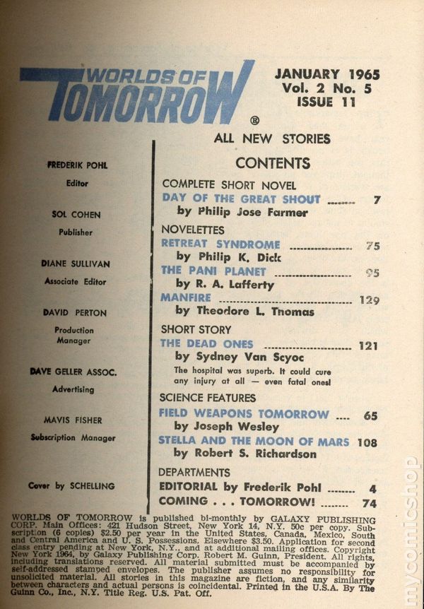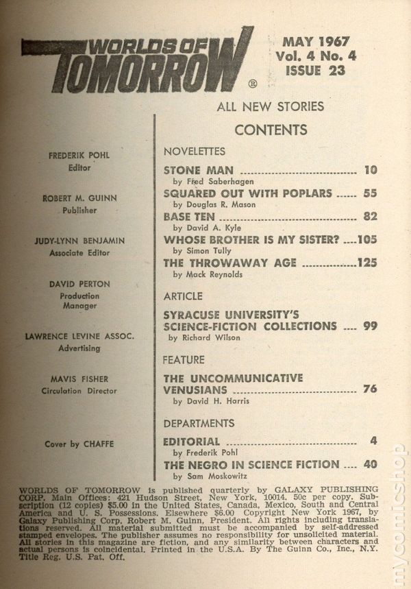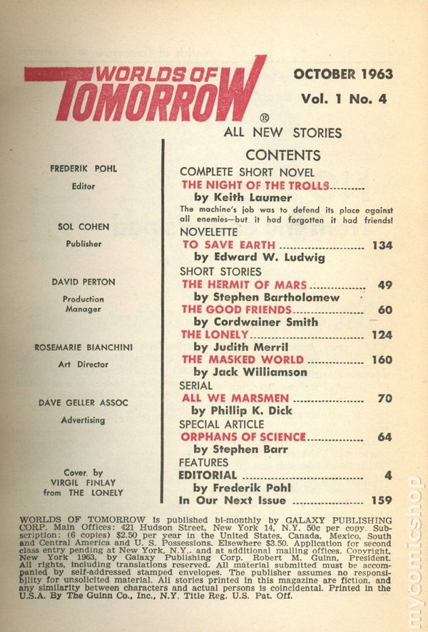 Worlds of Tomorrow (1963-1971 Galaxy) Vol. 1 #4Published Oct 1963 by Galaxy Publishing.