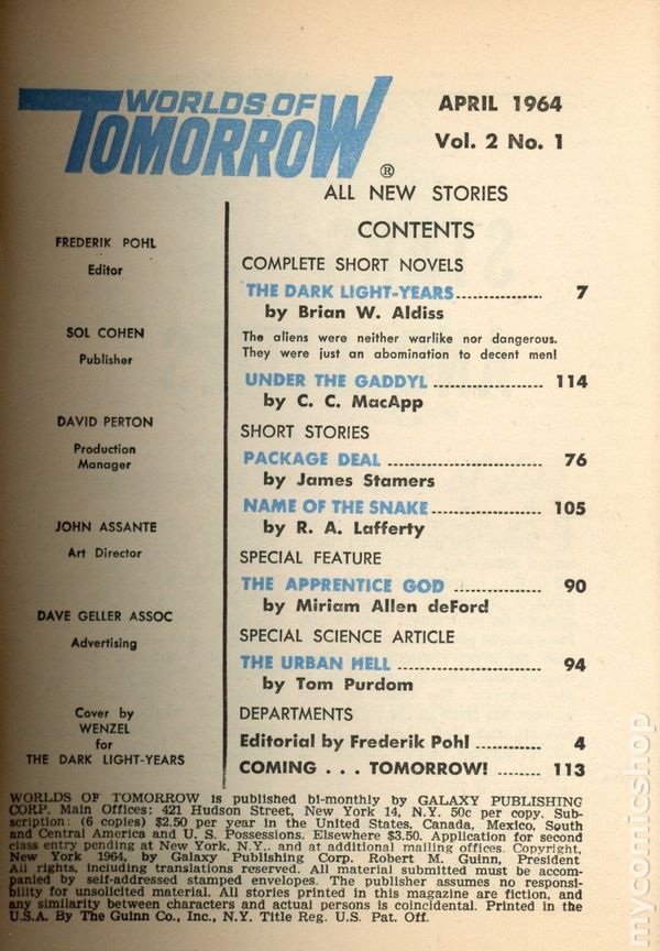 Worlds of Tomorrow (1963-1971 Galaxy) Vol. 2 #1Published Apr 1964 by Galaxy Publishing.