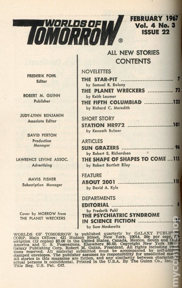 Worlds of Tomorrow (1963-1971 Galaxy) Vol. 3 #6Published Mar 1966 by Galaxy Publishing.$3.00