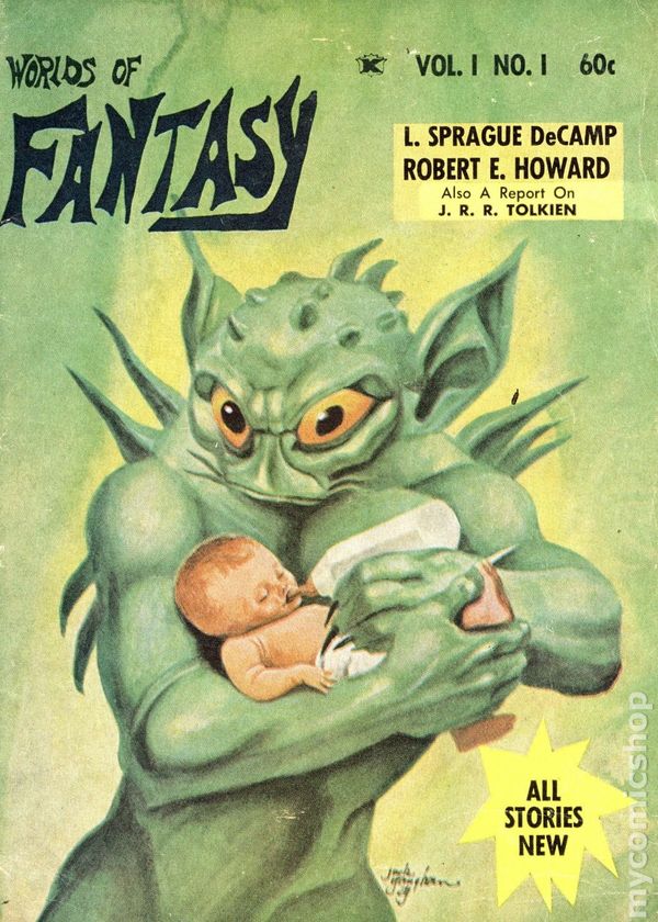 Vol. 1 #1 - 1968. Cover by Jack Gaughan. All interior art by Gaughan. Fantasy Stories: "Conan and the Cenotaph" by Lin Carter and L. Sprague De Camp, "What the Vintners Buy" by Mack Reynolds, "Delenda Est" by Robert E. Howard, "As Is" by Robert Silverberg, "The Mirror of Wizardry" by John Jakes, "However" by Robert Lory, "The Man Who Liked" by Robert Hoskins, "Death is a Lonely Place" by Bill Warren and "After Armageddon" by Paris Flammonde. All stories new, including the REH short story. Also Lester Del Rey on J.R.R. Tolkien. This first issue was a trial, quarterly for the next three issues. Pulp Digest, 5 1/4-in. x 7 1/2-in., 130 pages, black and white. Cover price $0.60.