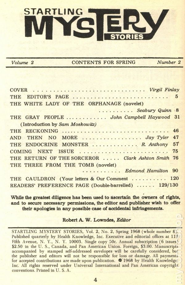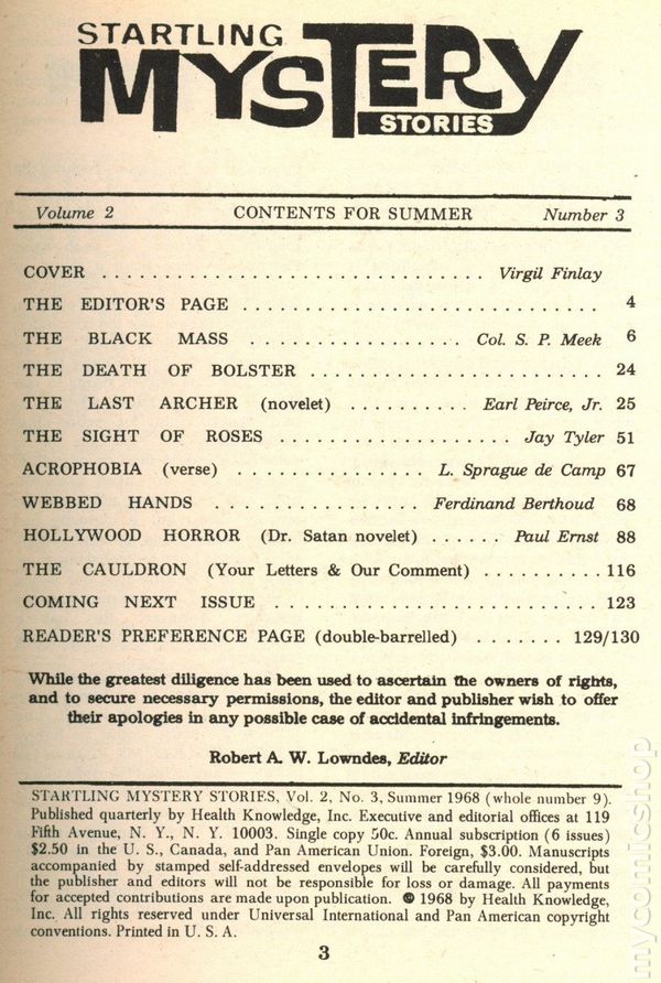 No. 8 - March , 1968. 5.5" x 7.25", 130 pages, B&W. Cover price $0.50.