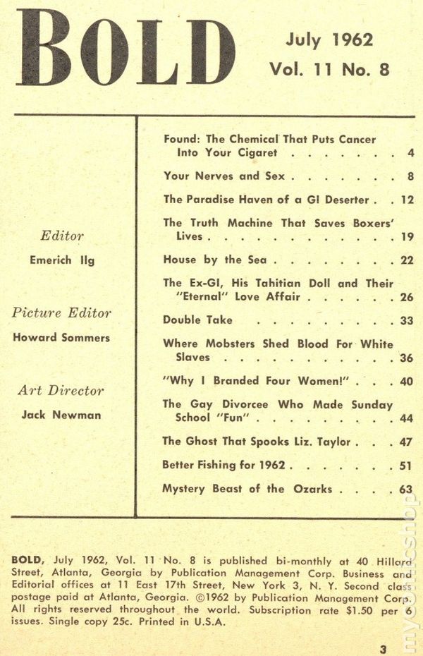 Bold (1951 Publication Management Corp.) Vol. 11 #8Published Jul 1962 by Publication Management Corp..