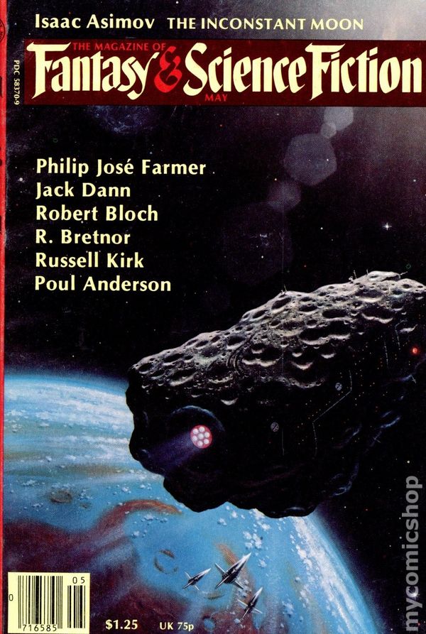 Volume 56, Issue 5 - May 1979. Cover by David Hardy. Fantasy and science fiction stories by Russsell Kirk, Jack Dann, Robert F. Young, Philip Jose Farmer, Robert Bloch, Gordon Eklund, Poul Anderson James P. Girard and R. Bretnor. 5 1/2-in. x 7 1/2-in., 162 pages, B&W Cover price $1.25.