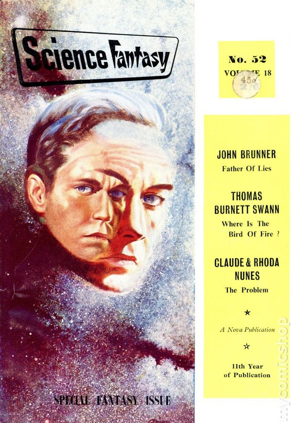 Vol. 18 #52 - April 1962. Science Fantasy, which later became Impulse and then SF Impulse, was a UK published science-fiction and fantasy digest that began production in the Summer of 1950 and was distributed by Nova Publications as a companion to Nova's New Worlds. When Nova went out of business in early 1964, The title was changed to Impulse in early 1966, to little avail, and then changed once more to SF Impulse for the last few issues. Science Fantasy ceased publication the following year, after the printer went bankrupt. Edited by John Carnell. Stories by John Brunner, Thomas Burnett Swann. Cover by Gerard Quinn. 5 1/4-in. x 7 3/4-in., 112 pages, black and white.
