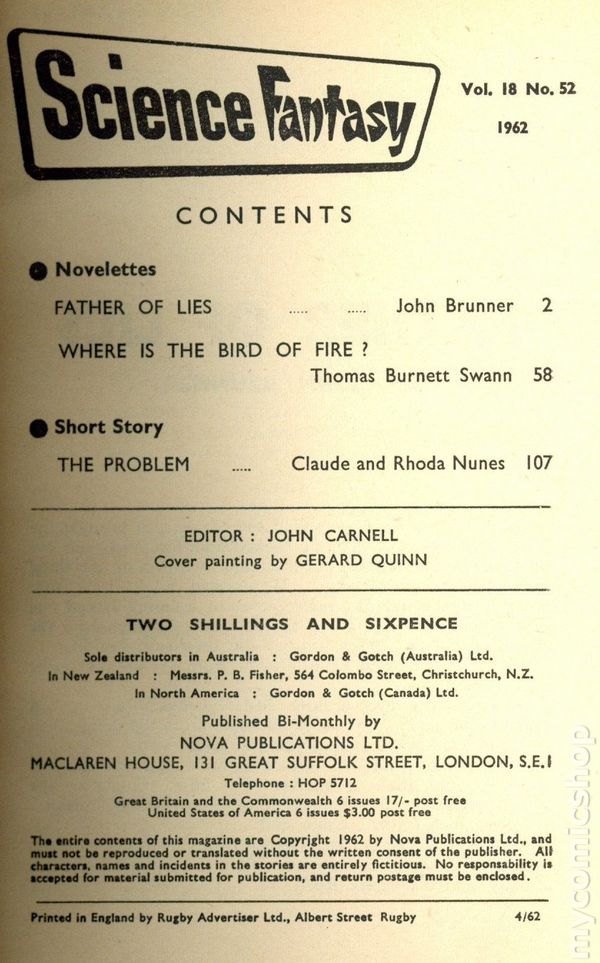 Published Oct 1962 by Nova Publications.
