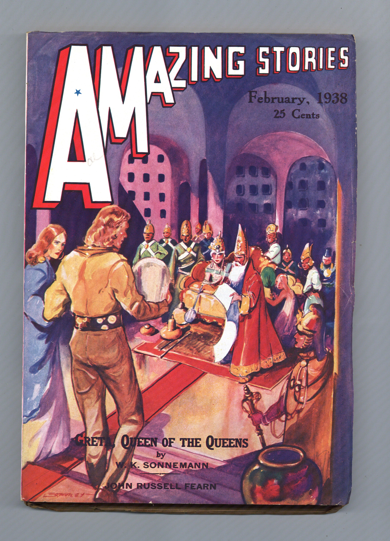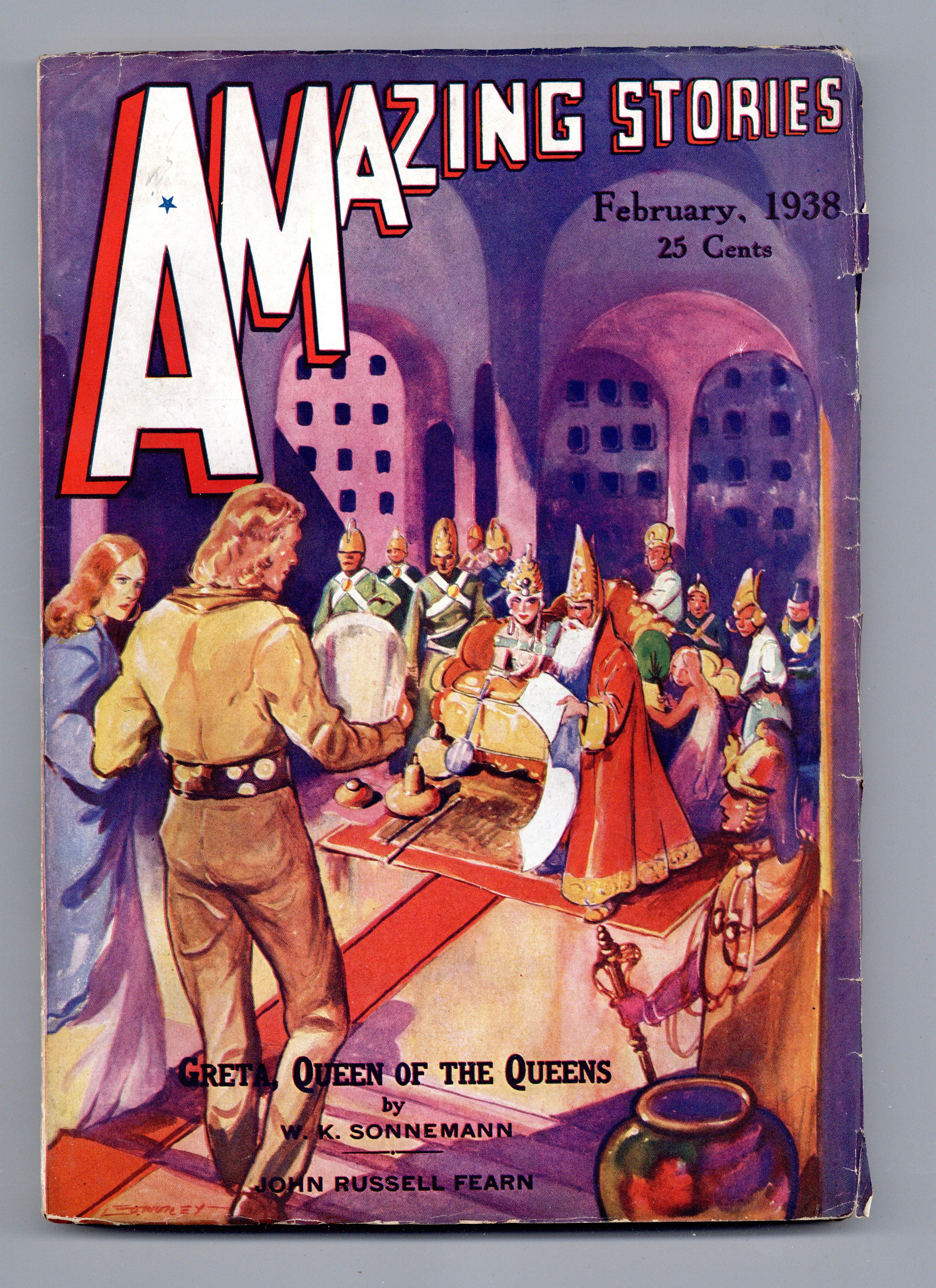 Feb 1938. Cover and illustrations by Leo Morey. Science fiction stories by W.K. Sonnemann, John Russell Fearn, Maurice Duclos, Miles J. Breuer M.D., and Stanton A. Coblentz. 7" x 10".; black and white with color cover; 144 newsprint pages. Cover price $0.25.