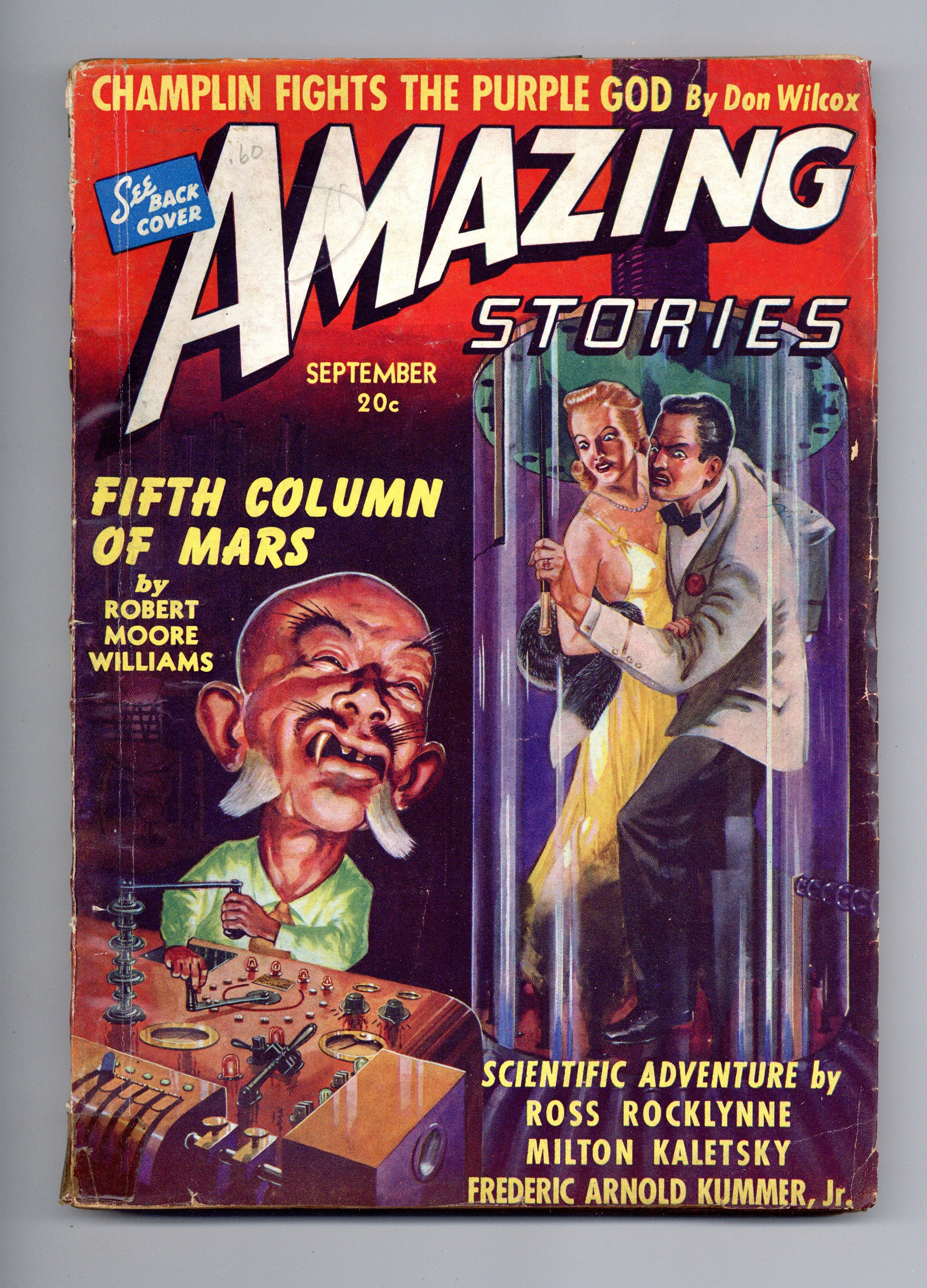 September 1940. Front cover by Robert Fuqua. Back cover by Frank R. Paul. Stories by Robert Moore Williams, Don Wilcox, Ross Rocklynne, Milton Kaletsky, Frederic Arnold Kummer Jr., and Jep Powell. Illustrations by R. Newman, Guy Gilford, Julian S. Krupa, and Fuqua. 7" x 10"; black and white with color cover; 144 newsprint pages. Cover price $0.20.
