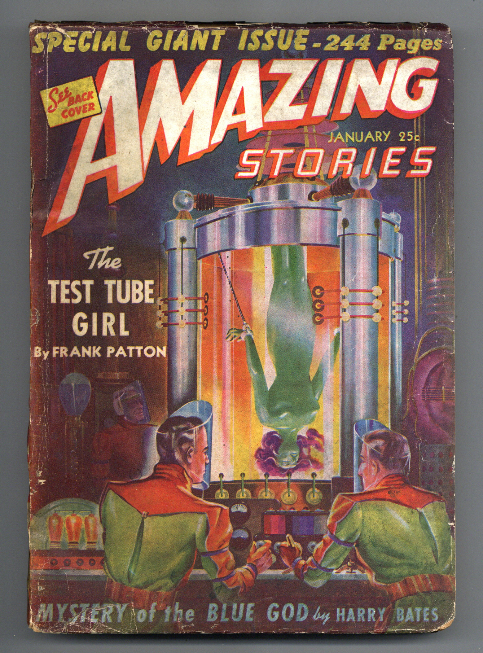 January 1942. Cover by Malcolm Smith. Special Giant Size Issue. Stories by Alfred Bester, Robert Moore Williams, Frank Patton, Donald Bern, Harry Bates, Festus Pragnell, P.F. Costello, Duncan Farnsworth, and William P. McGivern. Illustrations by Virgil Finlay, Robert Fuqua, Magarian, Rod Ruth, Jay Jackson, and Joe Sewell. 7" x 10"; black and white with color cover; 244 newsprint pages. Cover price $0.25.