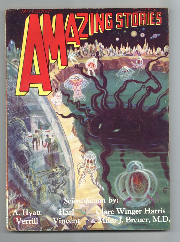 Volume 4, Issue 9 - December, 1929. Amazing Stories volume 4 number 9 published in December 1929. Edited by Hugo Gernsback. 8-in. x 11-in., 176 pages, black and white. Cover price $0.25.