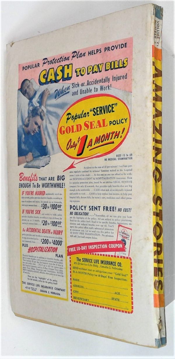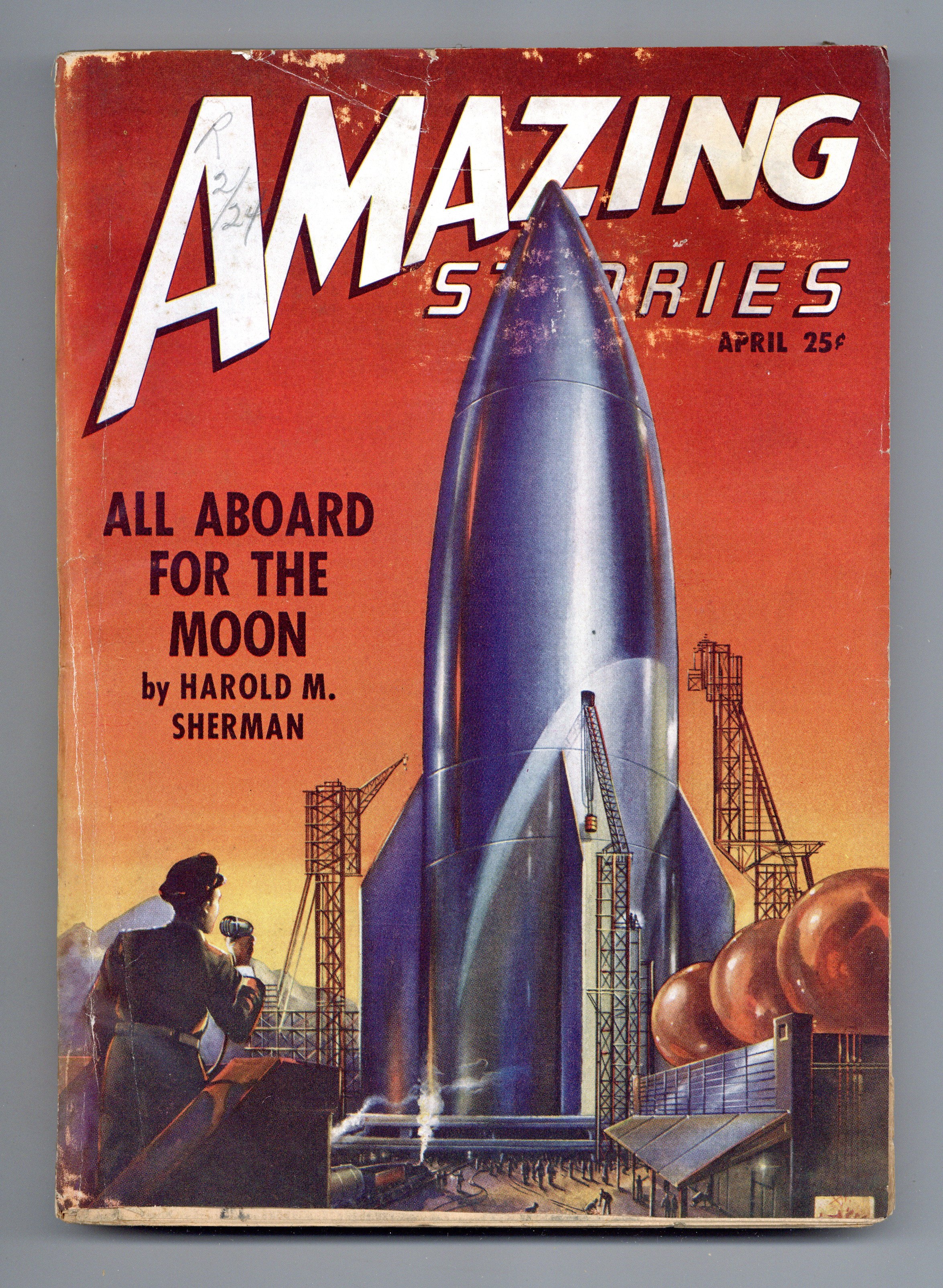 April 1947. Science fiction stories by Harold M. Sherman, John and Dorothy de Courcy, and Millen Cooke. Illustrations by Arnold Kohn and Julian S. Krupa. Cover by Krupa. 7-in. x 10-in.; black and white; 176 newsprint pages. Cover price $0.25.