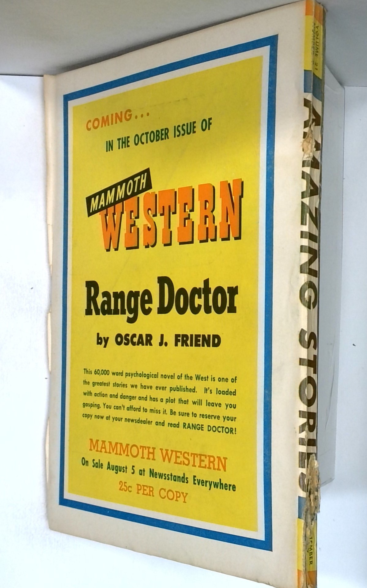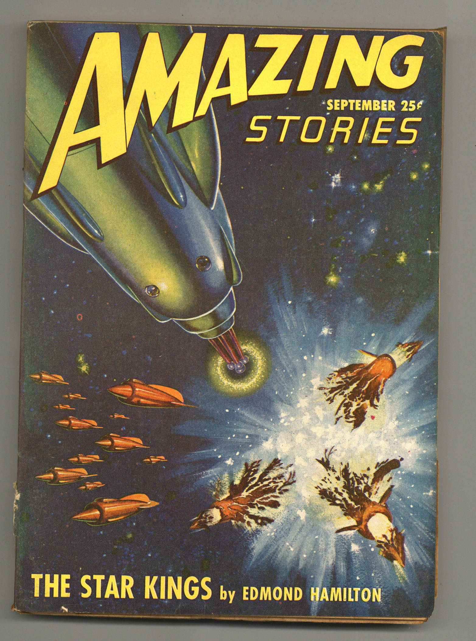 Volume 21, Issue 9 - September, 1947. Cover by Malcolm Smith. Stories by Edmond Hamilton ("The Star Kings"), Rog Phillips, Lee Francis, and Frances Yerxa. Illustrations by Malcolm Smith, Joe Wirt Tillotson, Enoch Sharp, and Rod Ruth. 7" x 10"; black and white with color cover; 180 newsprint pages. Cover price $0.25.
