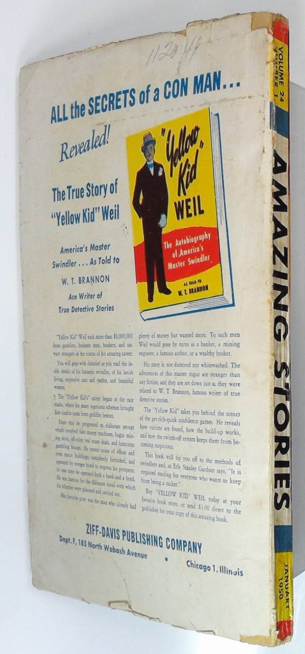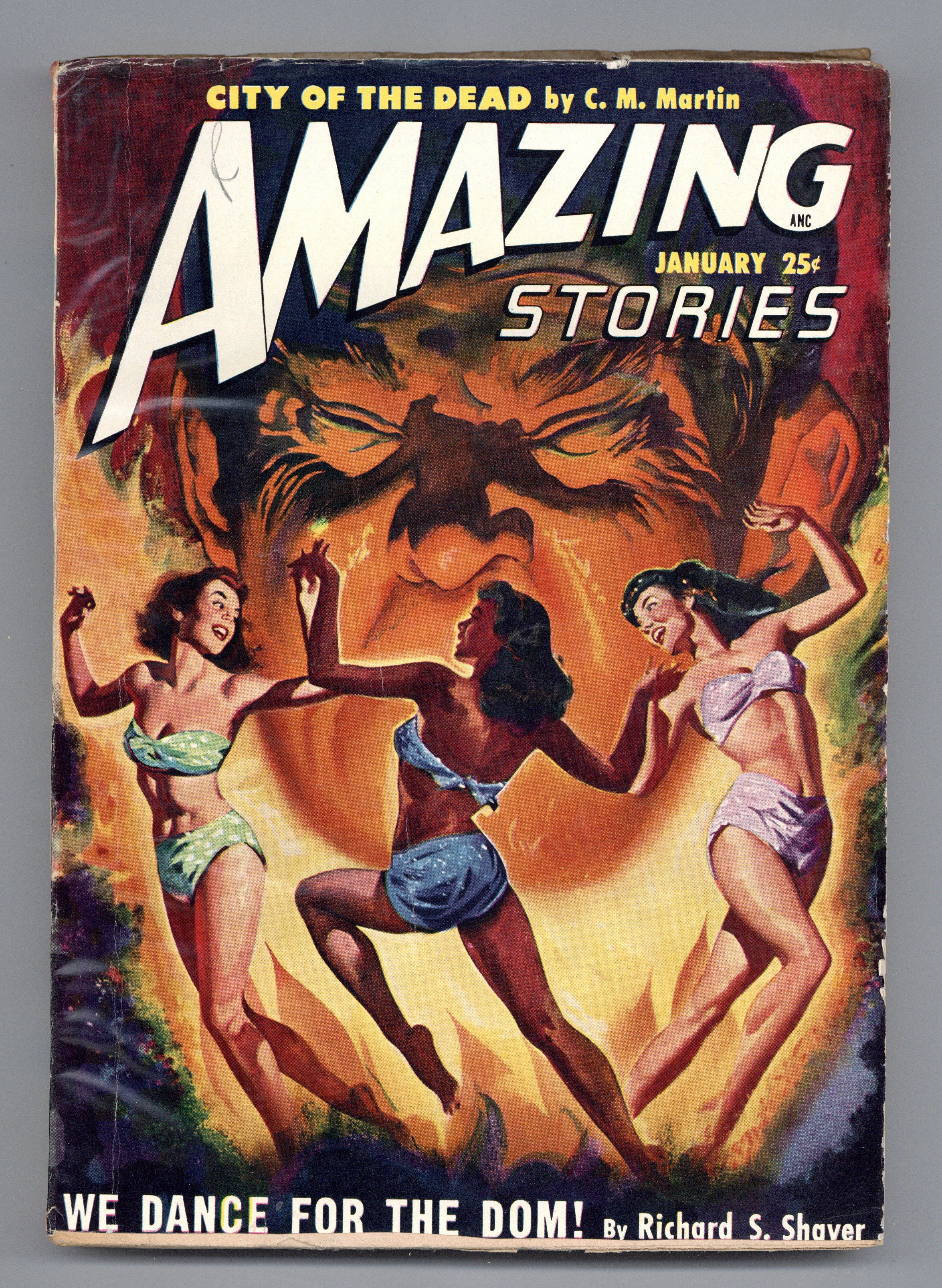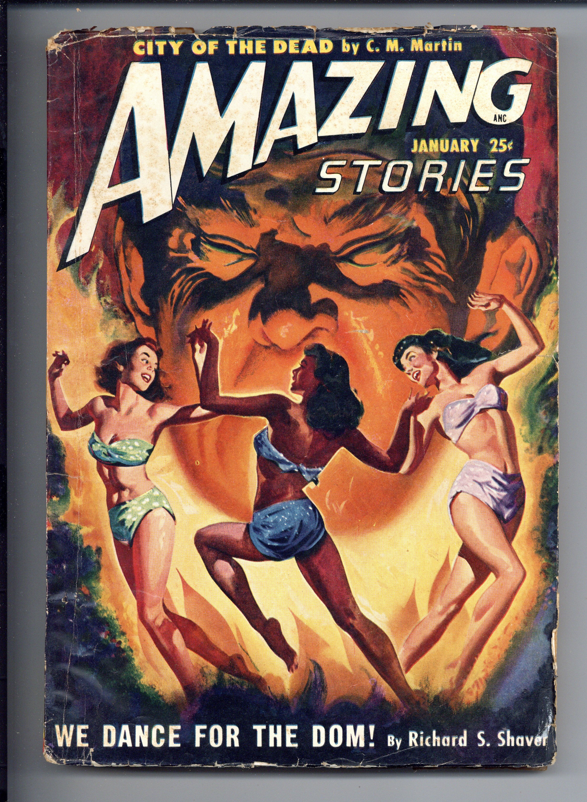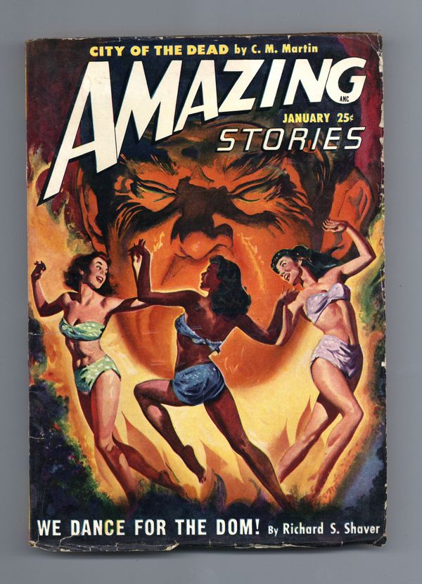 Volume 24, Issue 1 - January, 1950. Cover by Arnold Kohn. Science fiction stories by Richard S. Shaver "We Dance for the Dom!", C.M. Martin, Craig Browning, Guy Archette, and Berkeley Livingston. Illustrations by Leo Ramon Summers, Rod Ruth, Julian S. Krupa, and Bill Terry. 7-in. x 10-in.; black and white; 164 newsprint pages. Cover price $0.25.