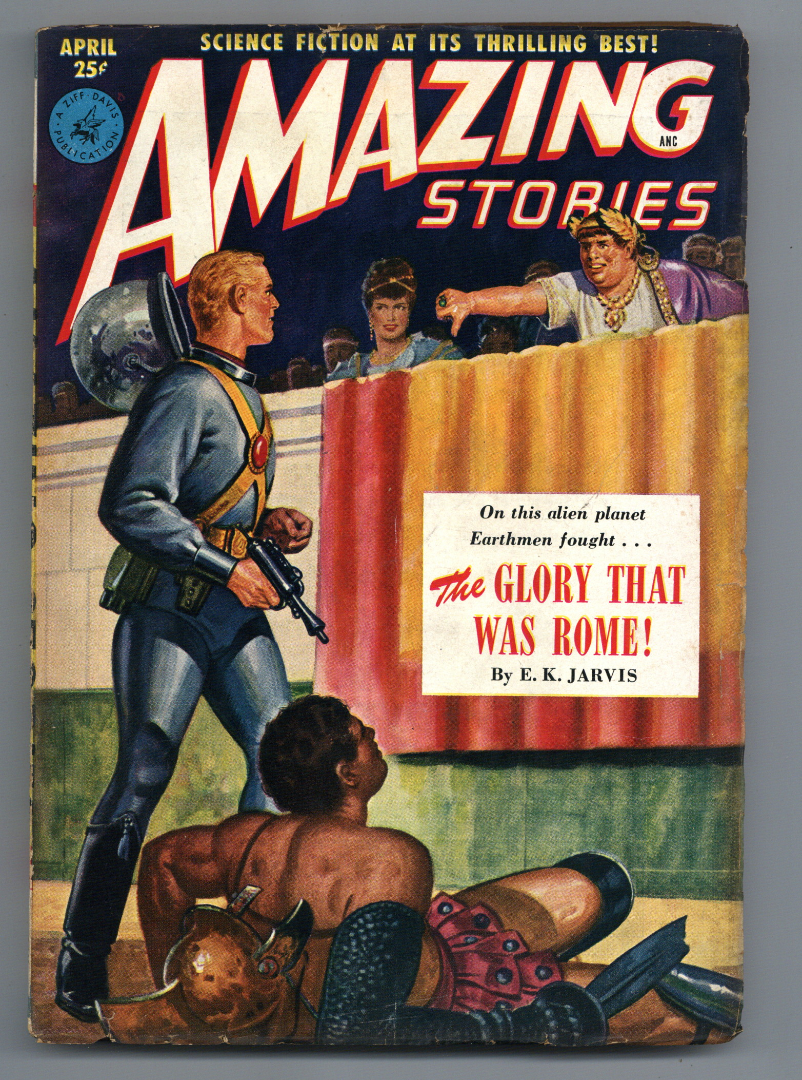 Volume 25, Issue 4 - April, 1951. Cover by Robert Gibson Jones. Science fiction stories by Isaac Asimov, Robert Moore Williams, E.K. Jarvis, Clee Garson, Kendall Foster Crossen, Charles Creighton, and H.B. Hickey. Illustrations by Ogden Whitney, Enoch Sharp, James Settles, Henry Sharp, and Edmond B. Swiatek. 7-in. x 10-in.; black and white; 166 newsprint pages. Cover price $0.25.
