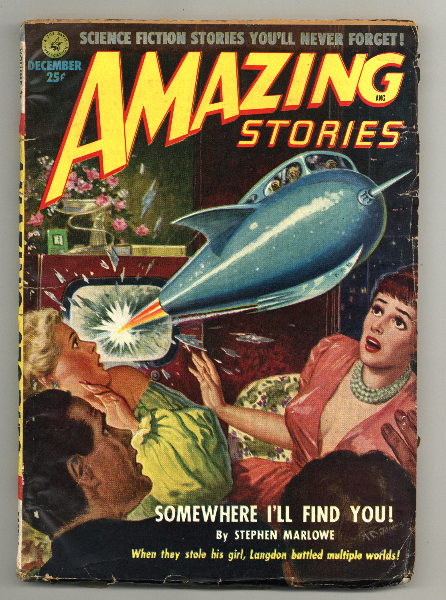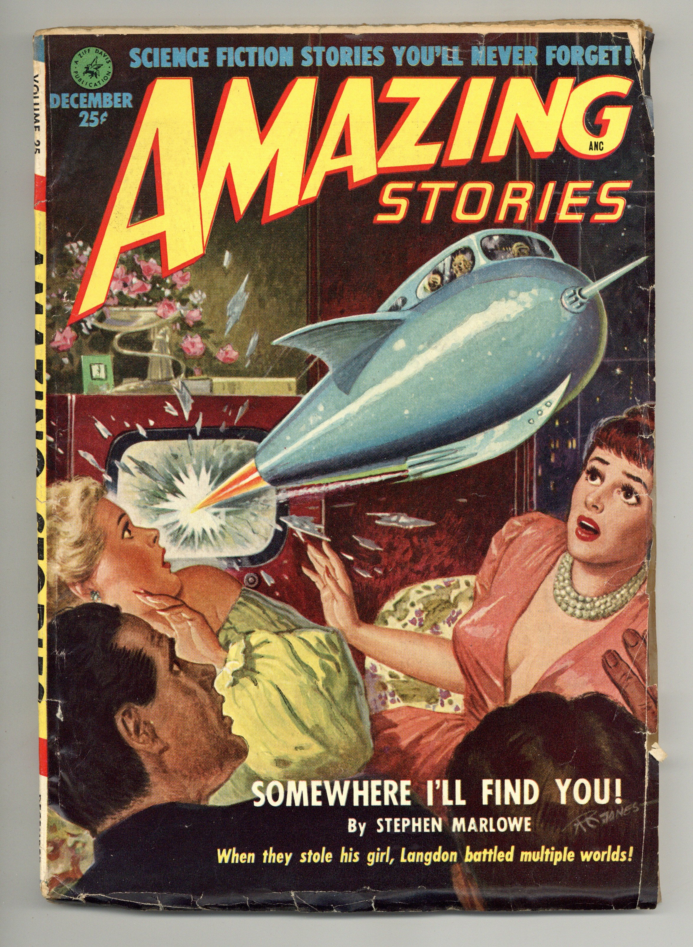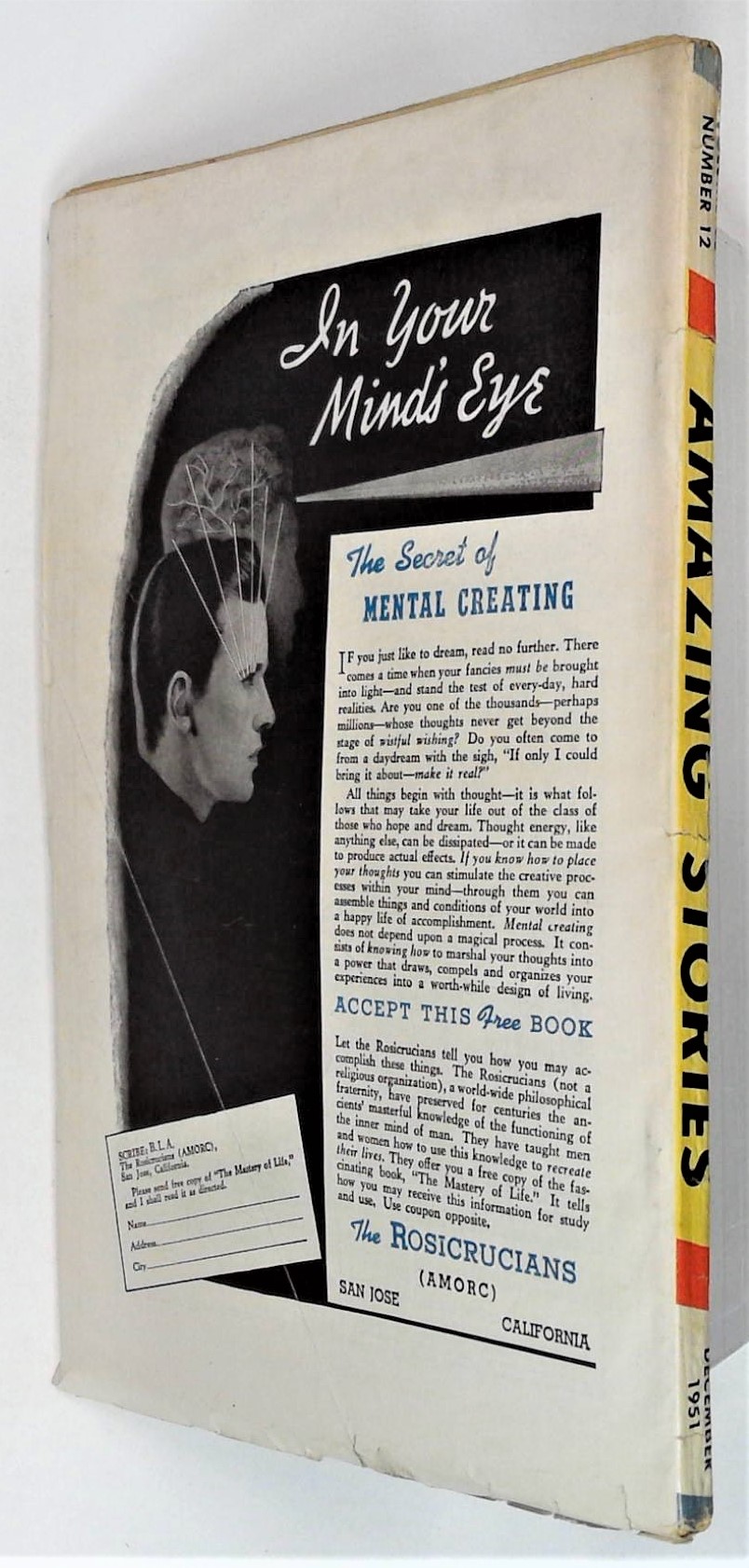 Volume 25, Issue 12 - December, 1951. Early 'television' cover by Robert Gibson Jones. Science fiction stories by Stephen Marlowe, Walter M. Miller Jr., H.B. Hickey, "The Hatchetman" by Mack Reynolds and Fredric Brown, and Rog Phillips. Illustrations by Virgil Finlay, Lawrence (Mort Lawrence?), Ed Valigursky, Leo Ramon Summers, and Ralph Castenir. 7-in. x 10-in.; black and white; 164 newsprint pages. Cover price $0.25.