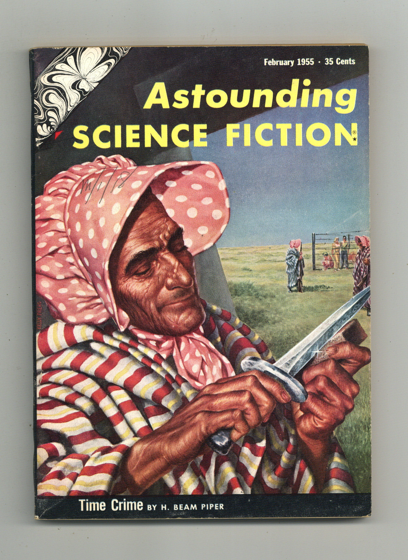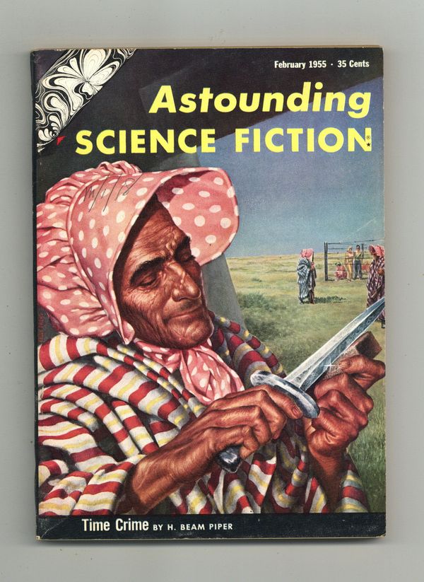 Published Feb 1955 by Street & Smith.$12.75Feb 1955. Volume 54, Issue 6 - 1st printing. Science fiction stories by H. Beam Piper, Algis Budrys, Lee Correy, Dean C. Ing, and James H. Schmitz. Illustrations by Freas, Wagoner, and van Dongen. Article on hemoglobin by Isaac Asimov. Cover by Frank Kelly Freas. Softcover, 5.5-in. x 7.75-in.; 168 newsprint pages, B&W. Cover price $0.35.