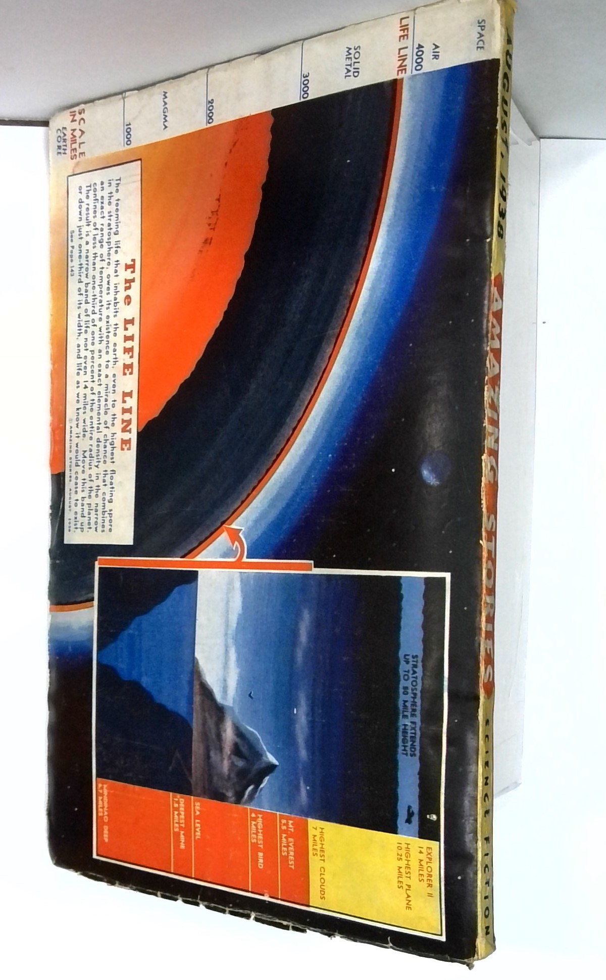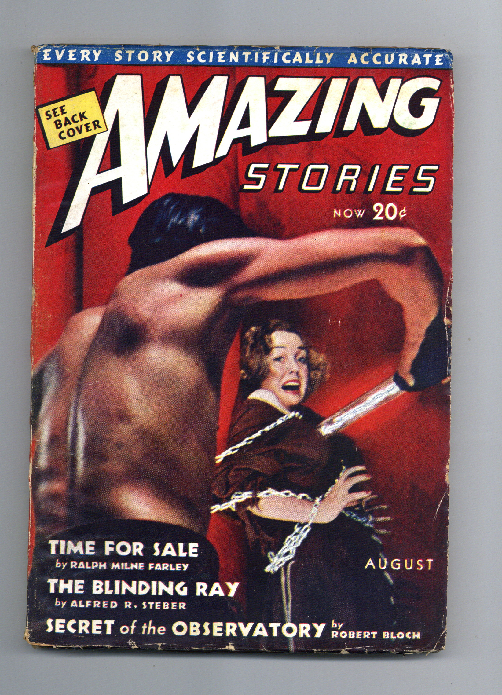 August 1938. Photo cover by Henry F. Kroeger. Science fiction stories by Robert Bloch ("Secret of the Observatory"), Ralph Milne Farley, Alfred R. Steber, Arthur R. Tofte, A.H. Vance, Thorp McClusky, and Wallace Quitman. Illustrations by Jay Jackson and Harold Welch. 7" x 10".; black and white with color cover; 146 newsprint pages. Cover price $0.20.