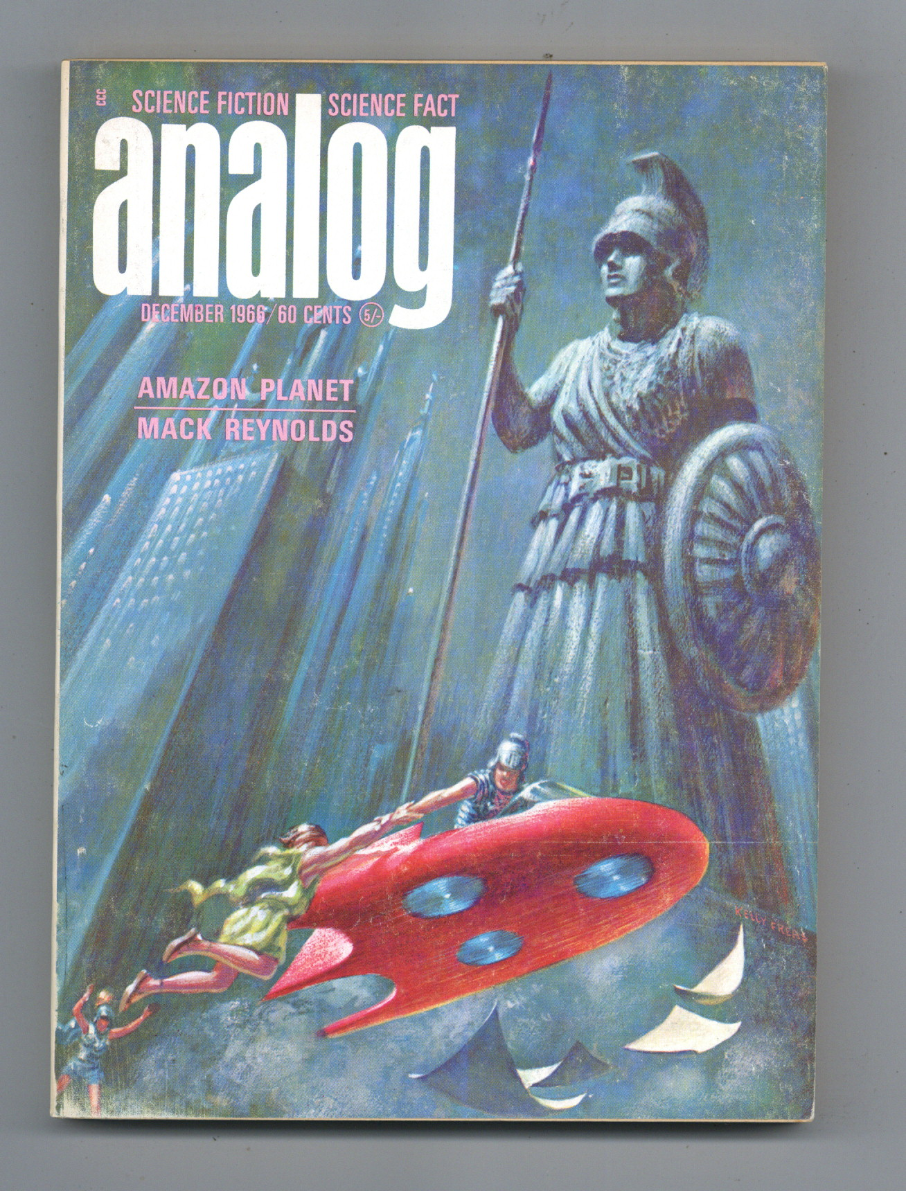 Published Dec 1966 by Dell Magazines.$2.65December 1966. Stories: "Amazon Planet" (part 1) by Mack Reynolds, "The Weathermakers" by Ben Bova, "The Price of Simeryl" by Kris Neville, "The Blue-Penciled Throop" by L. Edey, and "Under the Dragon's Tail" by Philip Latham. Science Fact feature, "Cytoplasmic Inheritance" by Carl A. Larson. Cover by Kelly Freas. Illustrations by Kelly Freas and Leo Summers. Softcover, 5.5-in. x 7.5-in.; 178 newsprint pages, B&W. Cover price $0.60.