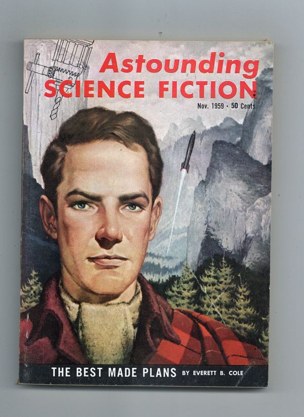 November 1959 - Volume 64, Issue 3 - 1st printing. Science fiction stories by Everett B. Cole ("The Best Made Plans" part 1), Randall Garrett, Richard Sabia, Eric Frank Russell, Rick Raphael, and Robert Silverberg. Illustrations by Freas, Martinez, van Dongen, and Bernklau. Cover by van Dongen. Softcover, 5.5-in. x 7.75-in.; 162 newsprint pages, B&W. Cover price $0.50.