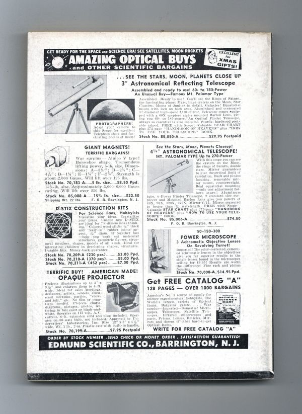 December 1959 - Volume 64, Issue 4 - 1st printing. Science fiction stories by Everett B. Cole ("The Best Made Plans" conclusion), Randall Garrett, George O. Smith, Christopher Anvil, and E.C. Tubb. Illustrations by Summers, van Dongen, and Bernklau. Article on good writing. Cover by van Dongen. Softcover, 5.5-in. x 7.75-in.; 162 newsprint pages, B&W. Cover price $0.50.