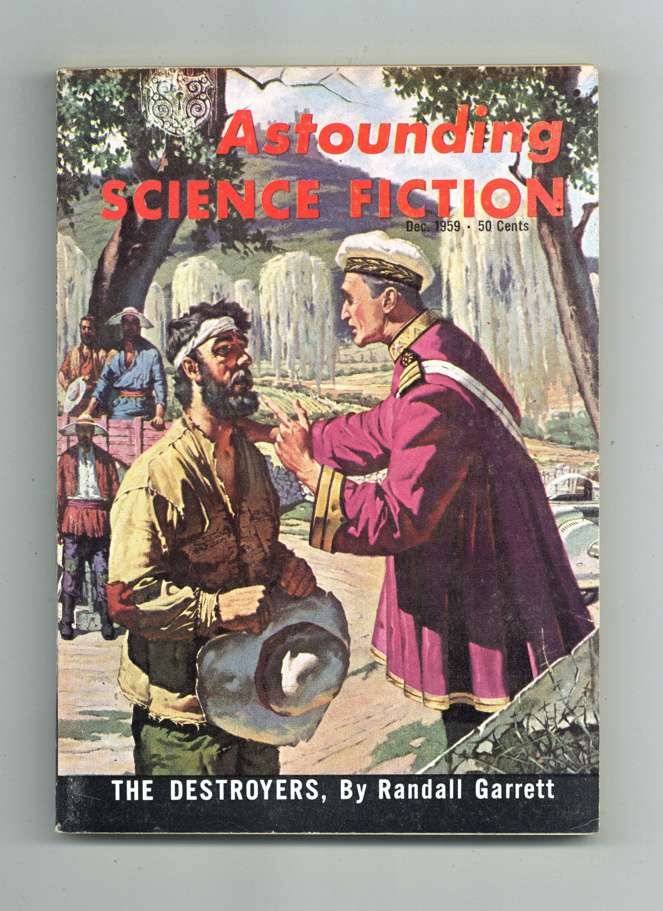 Published Dec 1959 by Street & Smith.$3.00December 1959 - Volume 64, Issue 4 - 1st printing. Science fiction stories by Everett B. Cole ("The Best Made Plans" conclusion), Randall Garrett, George O. Smith, Christopher Anvil, and E.C. Tubb. Illustrations by Summers, van Dongen, and Bernklau. Article on good writing. Cover by van Dongen. Softcover, 5.5-in. x 7.75-in.; 162 newsprint pages, B&W. Cover price $0.50.