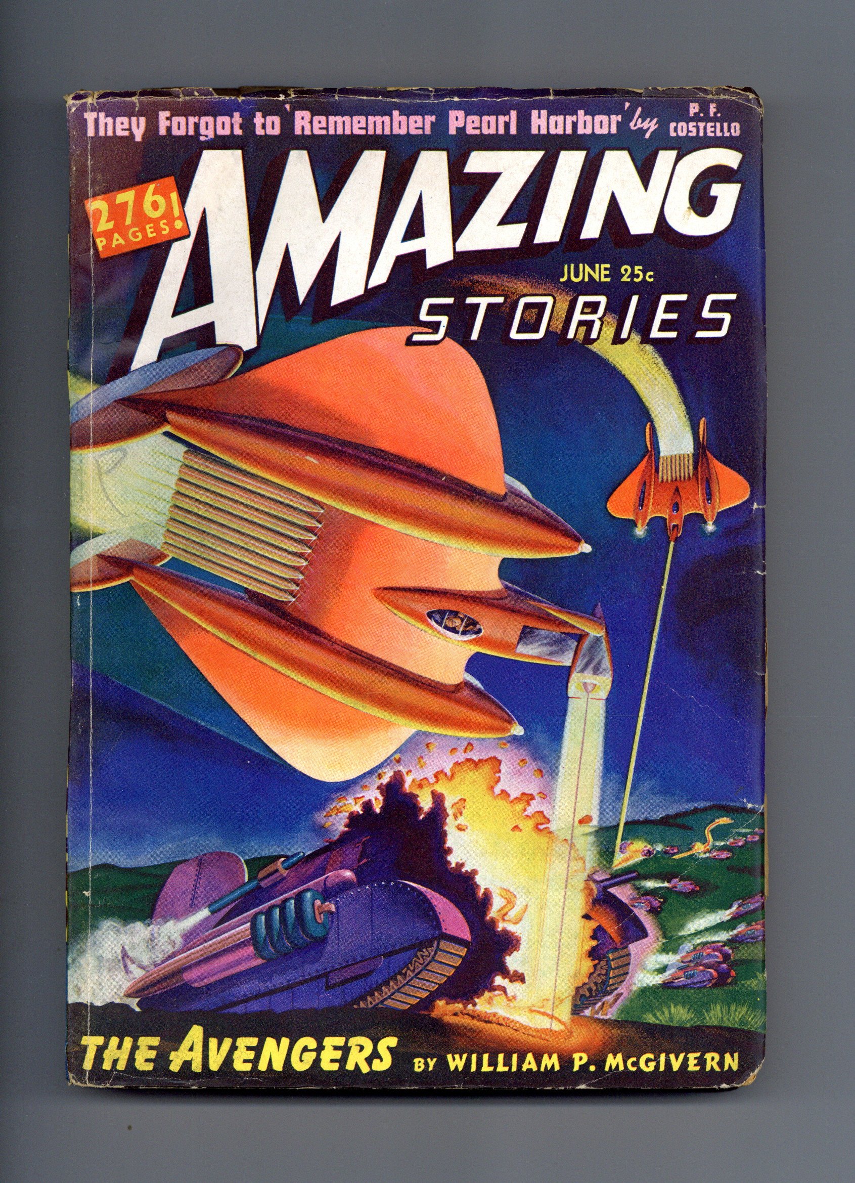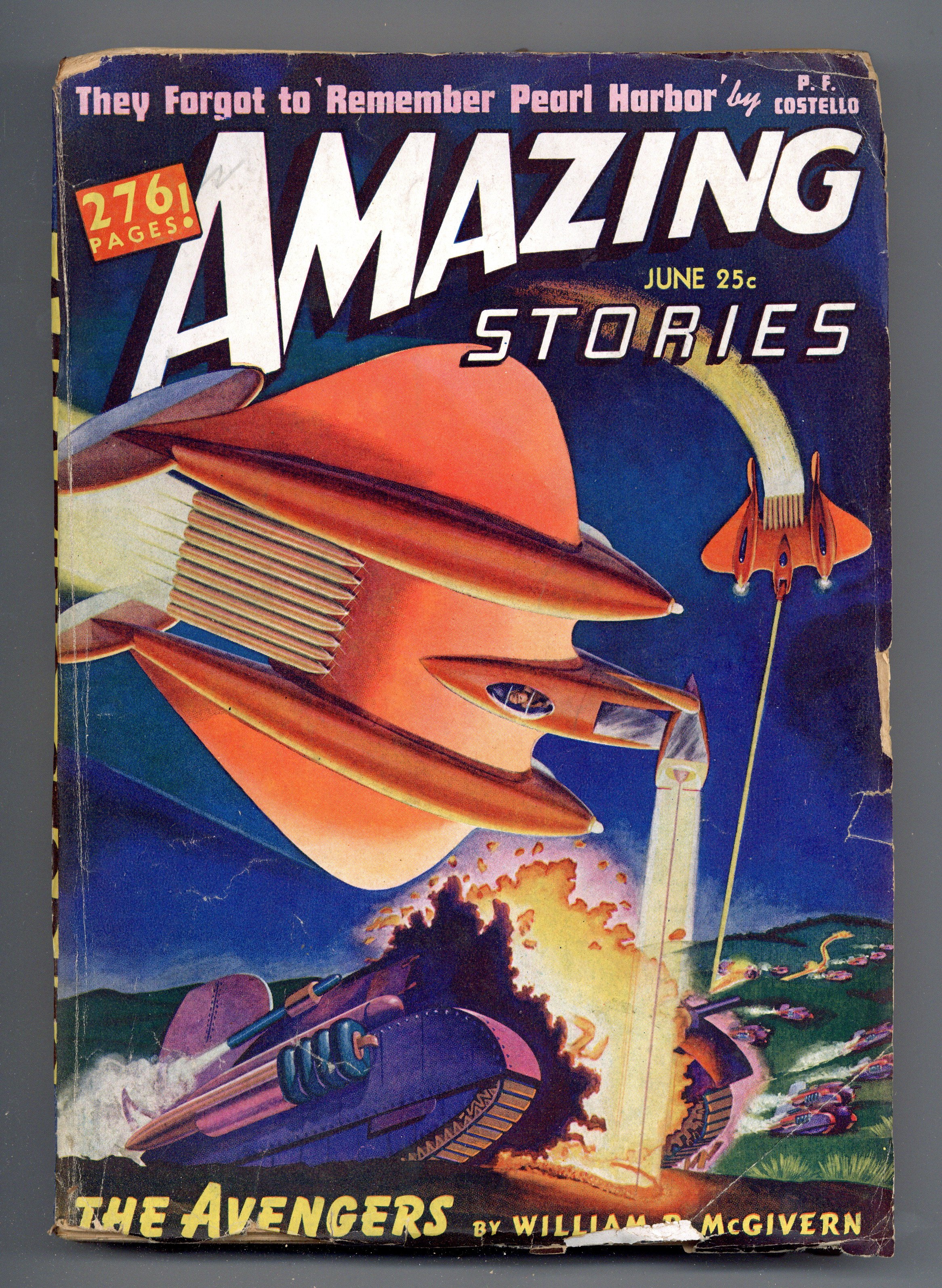 June 1942. Cover by Malcolm Smith. "The Avengers" by William P. McGivern. Other stories by P. F. Costello, Emil Petaja, Raymond Z. Gallun, Dwight V. Swain, A. R. McKenzie, Manly Wade Wellman, John York Cabot, Gerald Vance, E. K. Jarvis, Nelson S. Bond, and Harl Vincent. Illustrations by Ned Hadley, Robert Fuqua, Jay Jackson, Raymond L. Jones, Julian S. Krupa. 7" x10"; black and white; 276 newsprint pages. Cover price $0.25.
