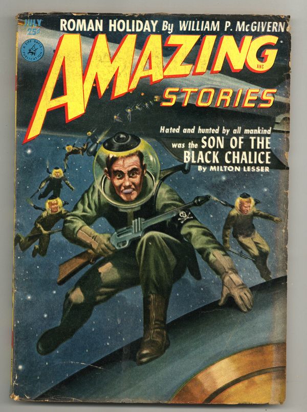 Volume 26, Issue 7 - July, 1952. Cover by Lawrence Stevens. "Son of the Black Chalice" by Milton Lesser. Other stories by Dean Evans, William P. McGivern, Don Wilcox, Tedd Thomey. Softcover pulp, 7-in. x 10-in., 164 pages, black and white (text with illustrations). Cover price $0.25.
