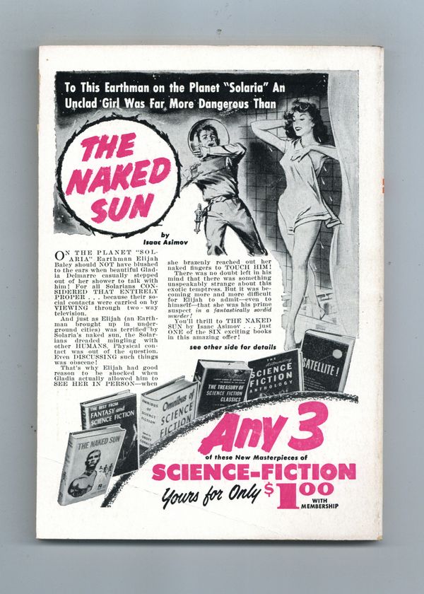Published Feb 1958 by Quinn Publishing Co..$4.49February 1958. Cover by Mel Hunter. Stories: "Assassin" by J. F. Bone, "The Barbarians" by John Sentry, "The Feeling of Power" by Isaac Asimov, "The Hero" by Elaine Wilber, "Contamination Crew" by Alan E. Nourse, "Out From the Sun" by Arthur C. Clarke, "Security Risk" by Ed M. Clinton, Jr., "The Standardized Man" by Stephen Bartholomew, and "Feet of Clay" by Philip Hoskins. 5.25-in. x 7.5-in.; 120 Pages, B&W. Cover price $0.35.