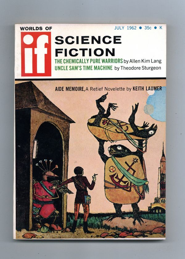 July, 1962. Cover by Burns. Science Fiction stories by Allen Kim Lang, Keith Laumer, C. C. Macapp, Cordwainer Smith, Bryce Walton, Robert Scott. Illustrations by Burns, Mack, Scheling. 5.25-in. x 7.5-in.; black and white; 130 newsprint pages. Cover price $0.35.