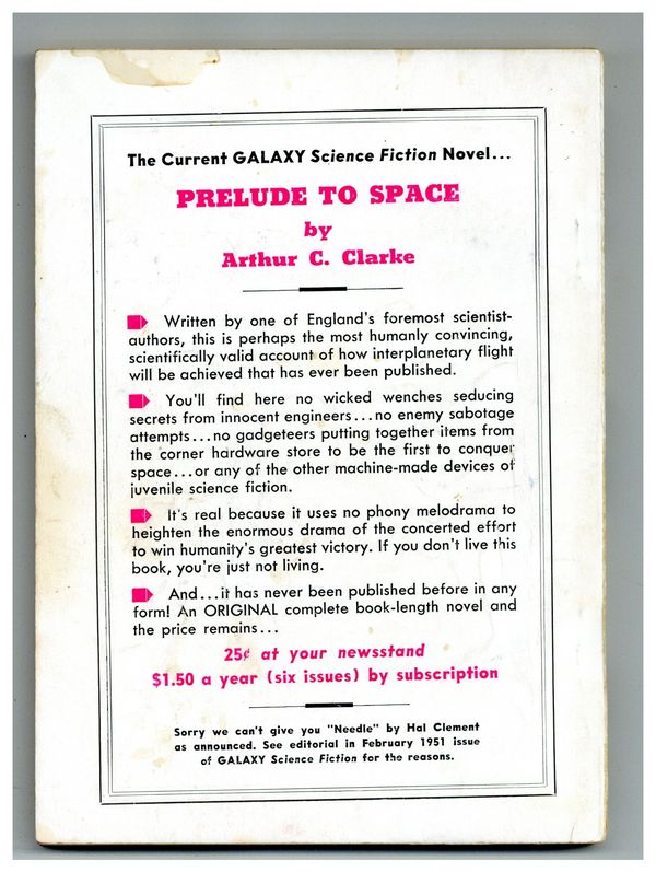 Published Mar 1951 by Galaxy Publications.$2.65- Back cover detached 5%. Water damage: Slight.