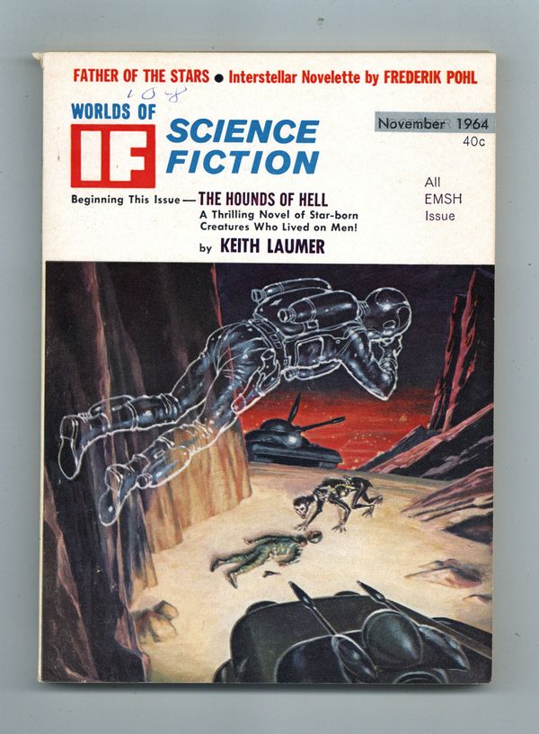 Published Nov 1964 by Quinn Publishing Co..$18.00November, 1964. Volume 14, Number 6. Cover and all illustrations by Ed Emshwiller (Emsh). Science Fiction stories by Keith Laumer, Gary Wright, Thomas M. Disch, Frederik Pohl, Simon Tully, L. J. Stecher Jr. 5.25-in. x 7.5-in.; black and white; 130 newsprint pages. Cover price $0.40.