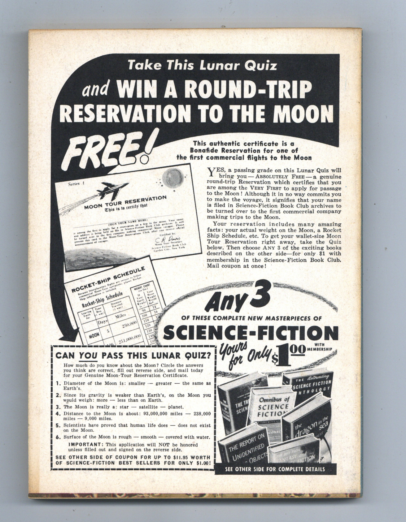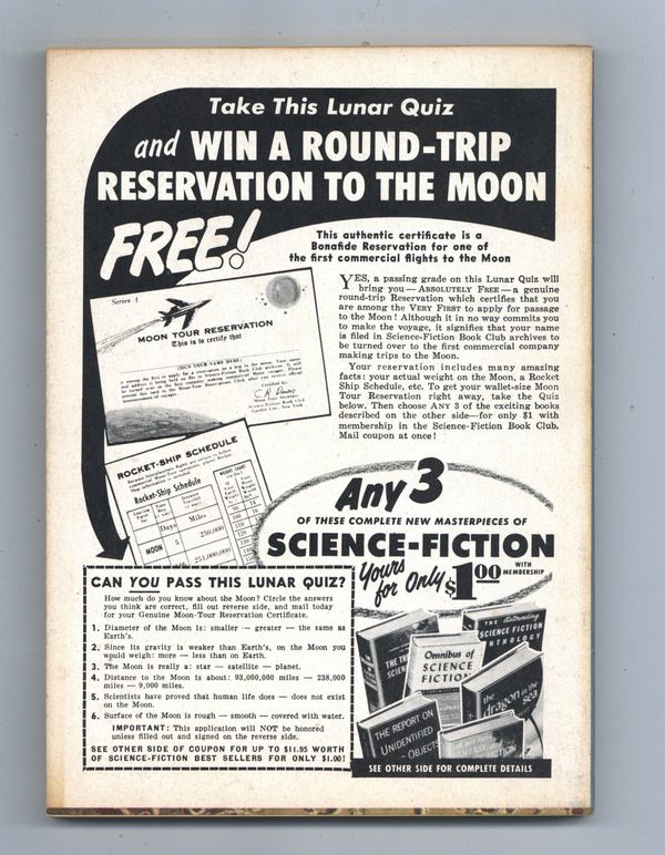 Published Jun 1957 by Mercury Publications.$18.00June 1957. Cover by John Pederson. Fantasy and science fiction stories: "The NIght of Light" by Philip Jose Farmer, "The Little Place" by Mark Van Doren, "Rescue" by G.C. Edmondson, "Love, Inc." by Robert Sheckley, "The Science Screen and Stage" by Charles Beaumont and William Morrison, "Moonshine" by Ruth M. Goldsmith, "The Sandman" by J.T. McIntosh, "Dodger Fan" by Will Stanton, "Security Check" by Arthur C. Clarke", "The Cage" by Bertram Chandler. Softcover, 5.5-in. x 7.5-in.; 128 newsprint pages, B&W. Cover price $0.35.