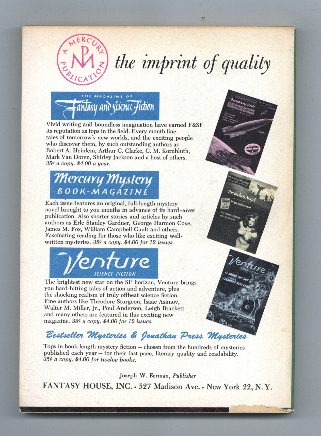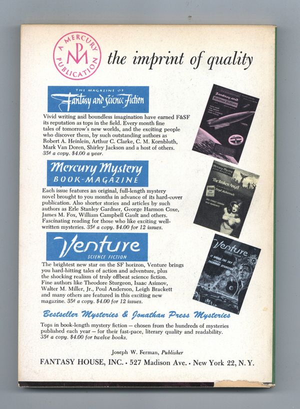 Published Jan 1958 by Fantasy House.$9.90Vol. 2, No. 1 - January , 1958. 5.25" x 7.25", 130 pages, B&W. Cover price $0.35.