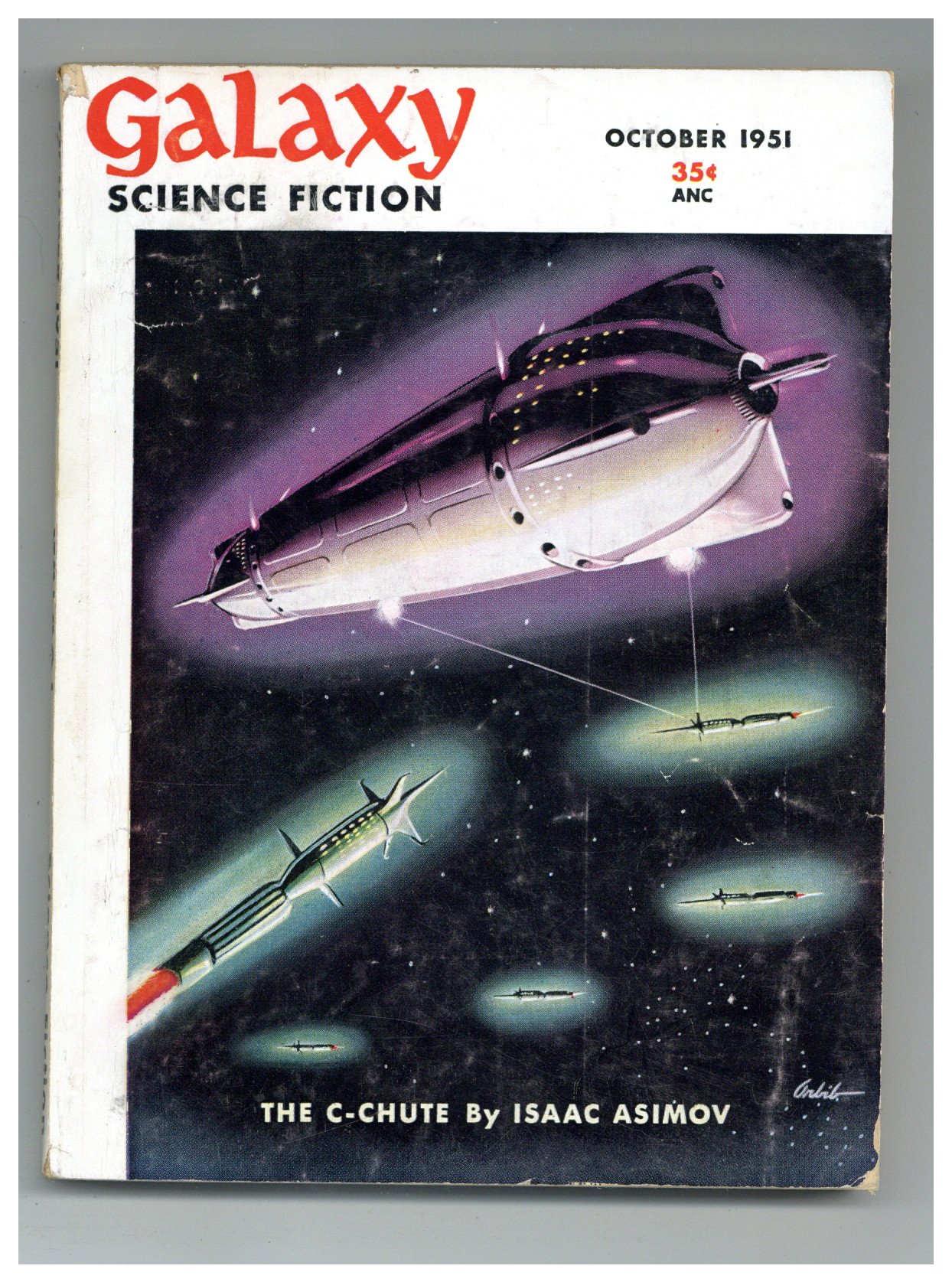 October 1951. Cover by Richard Arbib. Stories: "The C-Chute" by Isaac Asimov, "Ambition" by William L. Bade, "Pleasant Dreams" by Ralph Robin, "Spacemen Die at Home" by Edward W. Ludwig, "The Celestial Hammerlock" by Donald Colvin, and "The Puppet Masters"(Part 2) by Robert A. Heinlein. 5.25-in. x 7.5-in.; 160 Pages, B&W. Cover price $0.35.