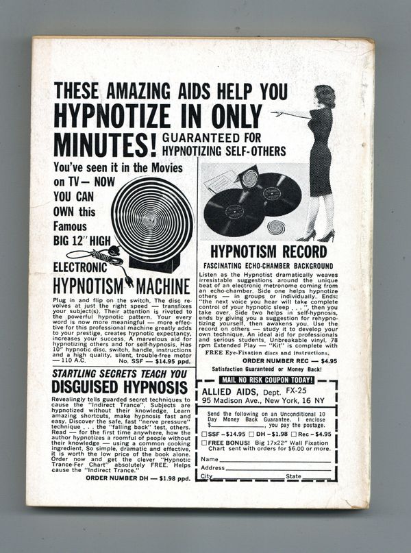 Published Aug 1966 by Galaxy Publications.$10.50August 1966. Cover by Morrow. Stories: "The Body Builders" by Keith Laumer, "The Piper of Dis" by James Blish and Norman L. Knight, "Who is Human" by Hayden Howard, "Heisenberg's Eyes"(Conclusion) by Frank Herbert, "Among the Hairy Earthmen" by R. A. Lafferty, and "The Look" by George Henry Smith. Non-Fact Article: "Heresies of the Huge God" by Brian W. Aldiss. 5.25-in. x 7.5-in.; 194 Pages, B&W. Cover price $0.60.