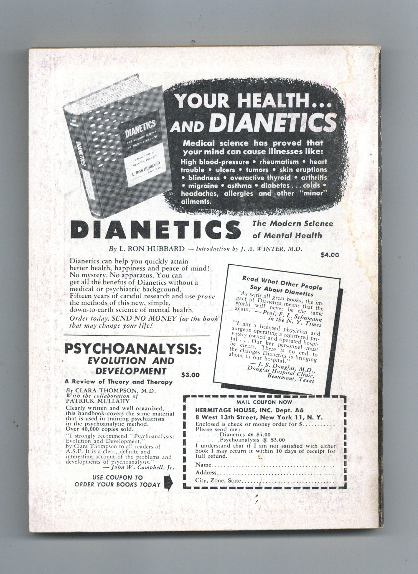 Published Aug 1951 by Street & Smith.$3.00- Water damage: Moderate. Staple rust: Slight.