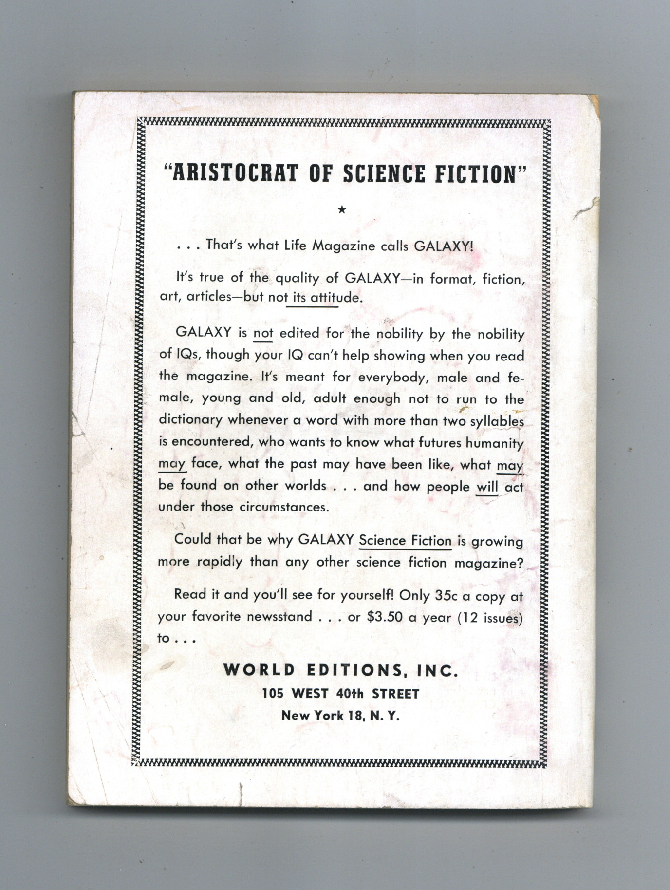 Published 1951 (est.) by Galaxy Publishing.$10.00- Front cover detached 15%.