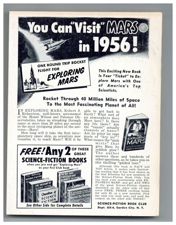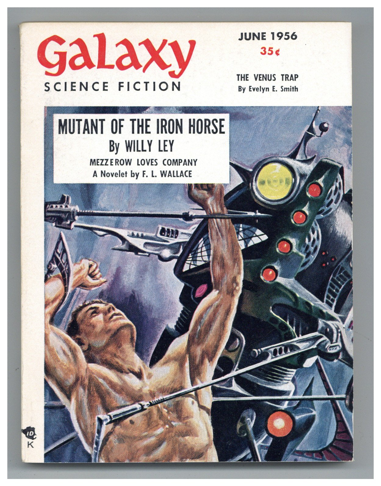 Published Jun 1956 by Galaxy Publications.$12.00June 1956. Cover by Emsh. Stories: "Mezzerow Loves Company" by F.L. Wallace, "The Venus Trap" by Evelyn E. Smith, "In The Cards" by Alan Cogan, "Death Wish" by Ned Lang, "The Scapegoat" by Richard Maples, "The Moralist" by Jack Taylor. Softcover Pulp Digest, 5-in. x 7-in.; 144 Pages, B&W. Cover price $0.35.