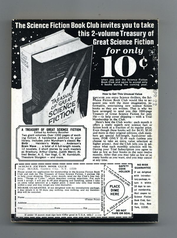 June 1968. Cover by Paul Wenzel. Stories: "The Beast That Should Love" by Harlan Ellison, "How We Banned The Bombs" by Mack Reynolds, "Daisies Yet Ungrown" by Ross Rocklynne, "The Garden of Ease" by Damon Knight, "Goblin Reservation" (Part 2 of 2) by Clifford D. Simak, "Detour To Space" by Robin Scott, "Waiting Place" by Harry Harrison, "Booth 13" by John Lutz. Illustrations by Jack Gaughan, Vaughan Bode, Joe Wehrle Jr., and Gray Morrow. Softcover Pulp Digest, 5-in. x 7-in.; 194 Pages, B&W. Cover price $0.60.