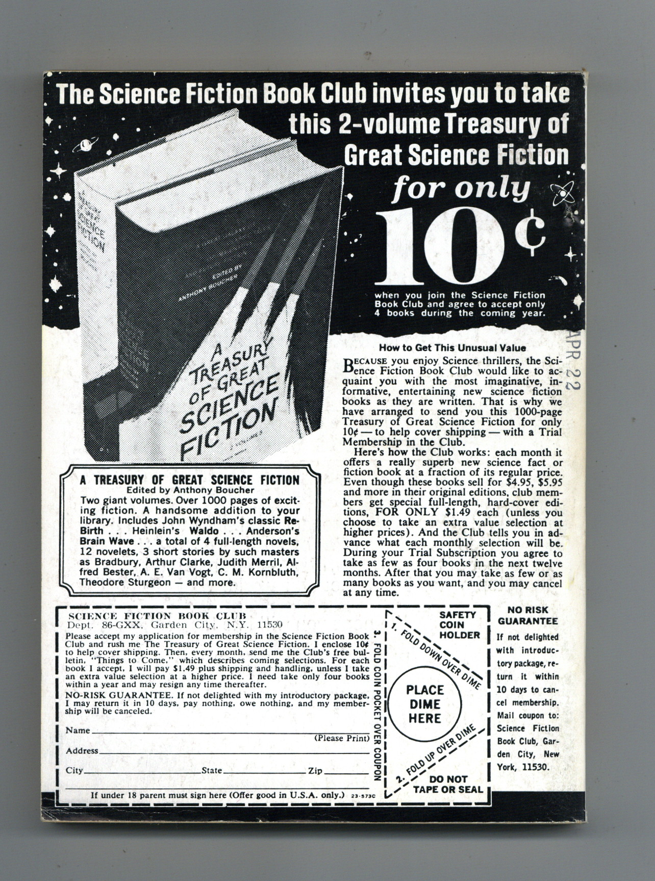Published Jun 1968 by Galaxy Publications.$43.00June 1968. Cover by Paul Wenzel. Stories: "The Beast That Should Love" by Harlan Ellison, "How We Banned The Bombs" by Mack Reynolds, "Daisies Yet Ungrown" by Ross Rocklynne, "The Garden of Ease" by Damon Knight, "Goblin Reservation" (Part 2 of 2) by Clifford D. Simak, "Detour To Space" by Robin Scott, "Waiting Place" by Harry Harrison, "Booth 13" by John Lutz. Illustrations by Jack Gaughan, Vaughan Bode, Joe Wehrle Jr., and Gray Morrow. Softcover Pulp Digest, 5-in. x 7-in.; 194 Pages, B&W. Cover price $0.60.