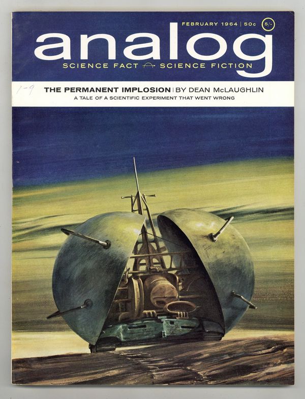 February 1964 - Cover Art by John Schoenherr. "Dune World" by Frank Herbert Part 3/3. Science Fact: "Secondary Meteorites" by Ralph A. Hall, M. D. and "Names For Space Plants" by John Becker. Novelette: "The Permanent Implosion" by Dean McLaughlin. Plus several other stories. Cover price $0.50.