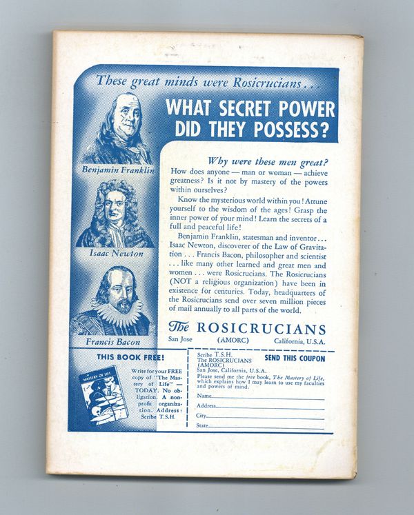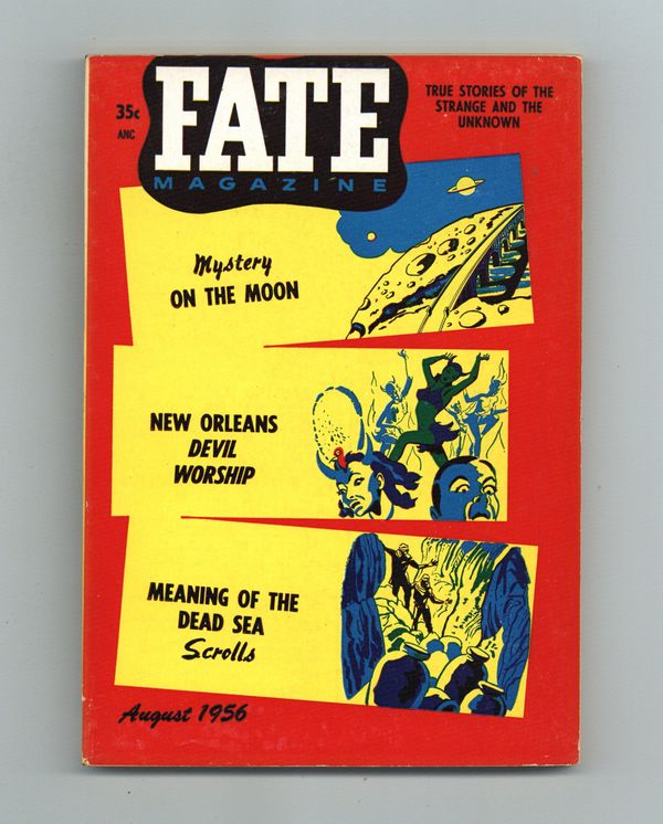 Volume 9 - Number 8, August 1956. Pulp magazine devoted to exploring the paranormal. This issue features A Mystery on the Moon, New Orleans Devil Worship, and the Meaning of the Dead Sea Scroll! Softcover, 5 1/2-in. x 7 1/2-in., 130 page, Text (with B&W Illustrations and Photos). Cover price $0.35.