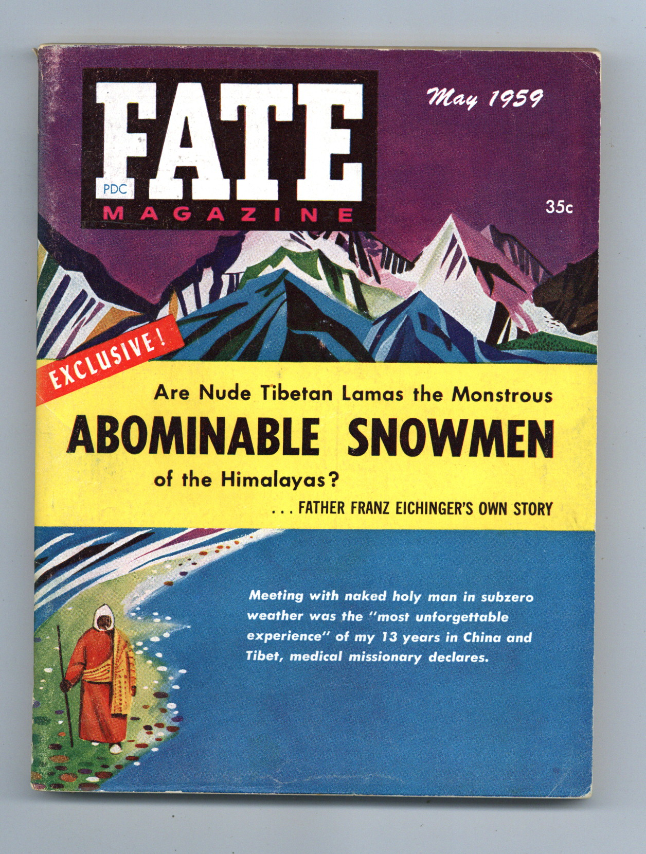 Volume 12 - Number 5, May 1959. Pulp magazine devoted to exploring the paranormal. Father Franz Eichinger brings us his story of meeting a Tibetan holy man and asks "Are Nude Tibetan Lamas the Monstrous Abominable Snowmen?" Softcover, 5 1/2-in. x 7 1/2-in., 130 page, Text (with B&W Illustrations and Photos). Cover price $0.35.