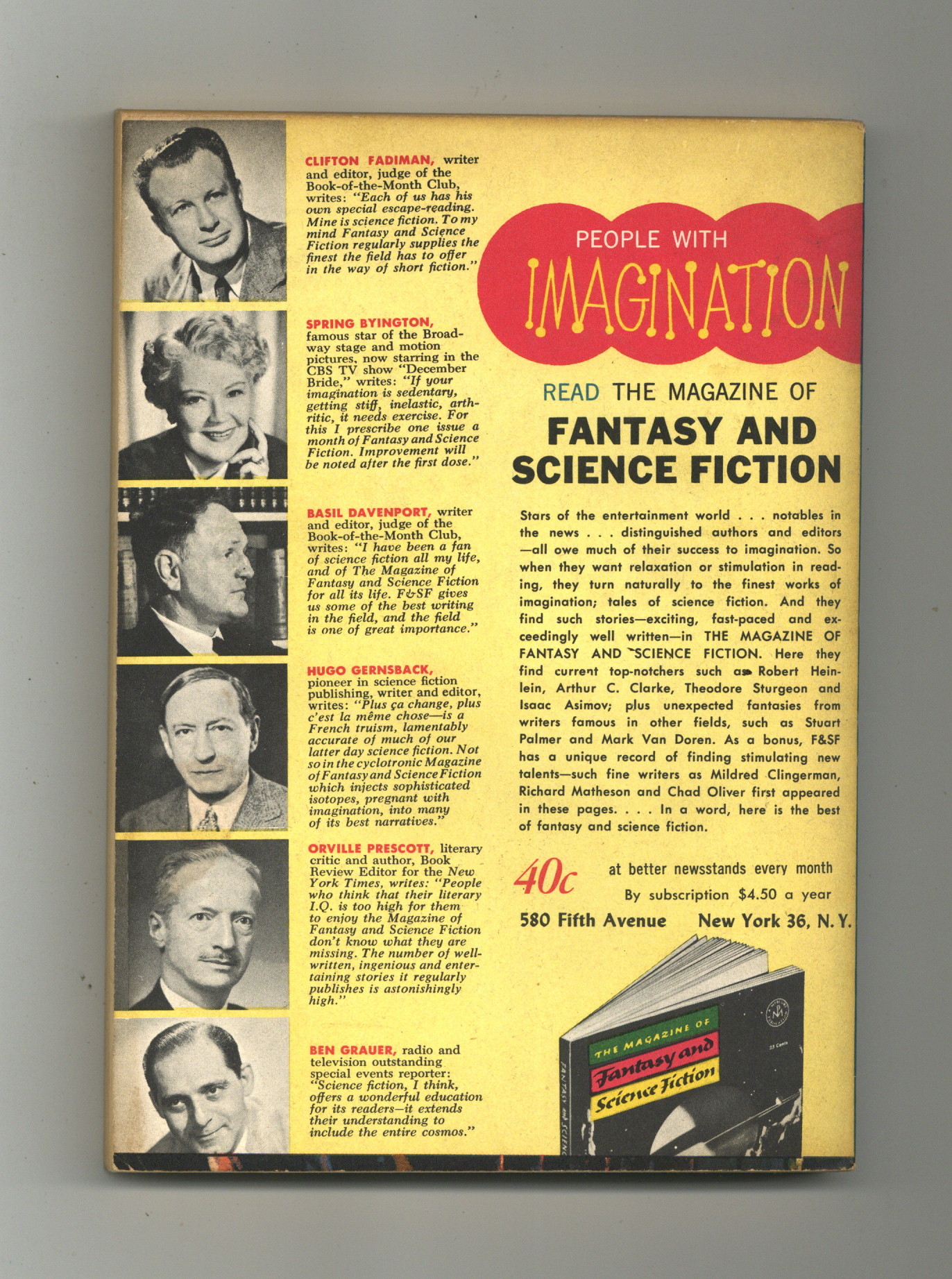 Published Nov 1961 by Mercury Publications.$10.00Volume 21, Issue 5 - November 1961. Cover by Emsh. Fantasy and science fiction stories by Keith Laumer, Walter Tevis, Rivk Rubin, George P. Elliot, Grendel Briarton, Doris Pitkin Buck, Alice Glaser, Randall Garrett, and Isaac Asimov. Softcover, 5 1/2-in. x 7 1/2-in.; 130 pages, B&W. Cover price $0.40.