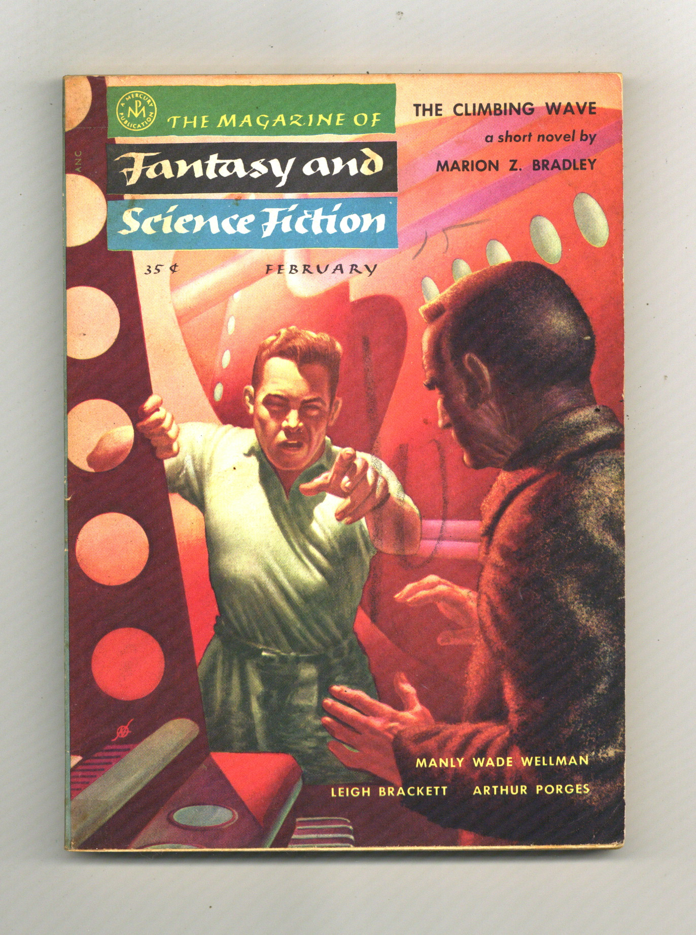 Published Feb 1955 by Mercury Publications.$29.00Volume 8, Issue 2 - February 1955. Cover by Kelly Freas. Fantasy and Science fiction stories by Marion Zimmer Bradley, Frederic Brown, Mildred Clingerman, Leigh Brackett, Arthur Porges, Manly Wade Wellman, P.M. Hubbard and Bryce Walton. Softcover, 5.5-in. x 7.5-in. 128 pages, text only. Cover price $0.35.